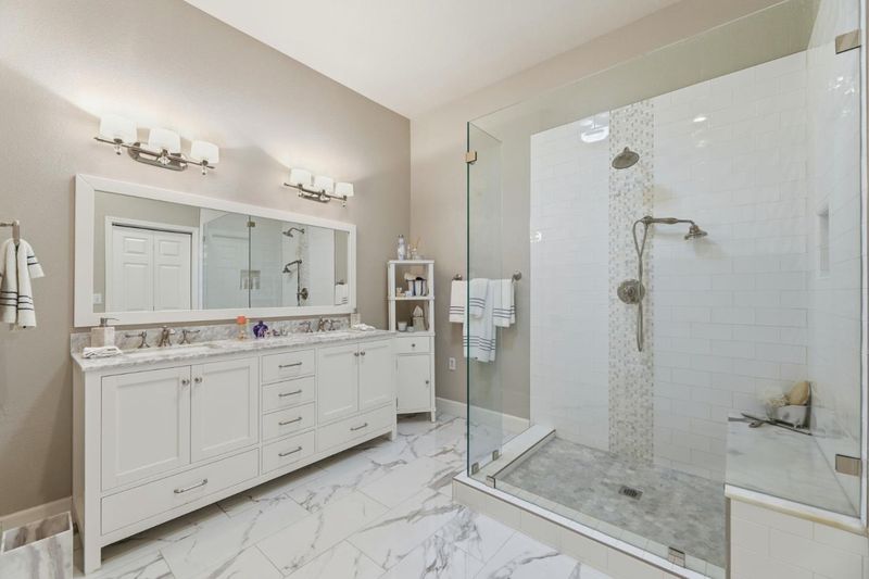- Double Sinks, Shower and Tub, Skylight, Tile, Primary - Stall Shower(s)