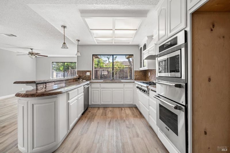 Spacious single-story home with an open floor plan, generous living spaces, and excellent natural light throughout. It has 4 Bedroom 2 full baths located in a court. Large rooms, and seamless indoor living. Designed for ease, comfort, and versatility. Formal living and dining areas. The kitchen is bright with white cabinets, granite counter tops, peninsula bar seating and stainless-steel appliances. Built in oven and microwave with gas cook-top. Newer HVAC, ducts and hot water heater. Its close to Travis Air Force Base, shopping and freeway access. Nice backyard with uncover patio.