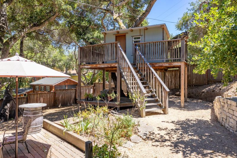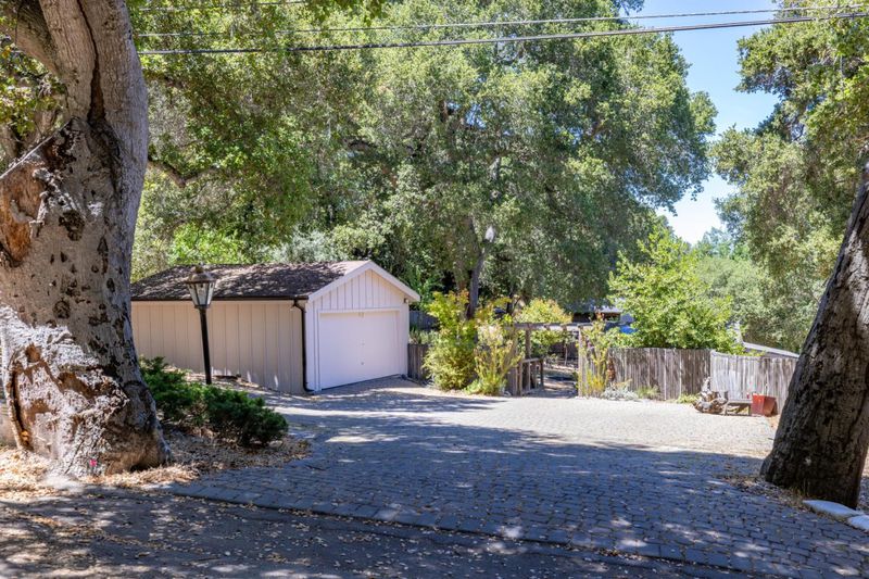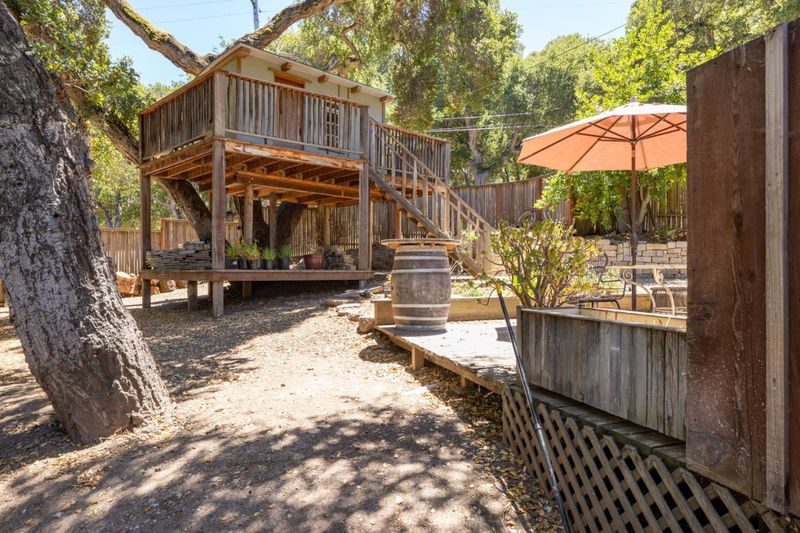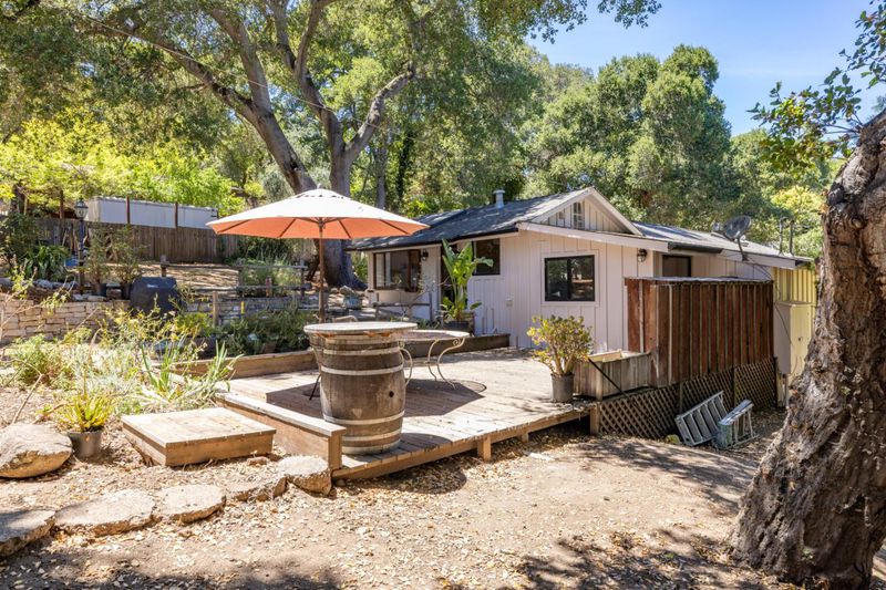 Robles Del Rio Cottage and Guest House. Beautifully preserved 1930's cottage on a corner lot across from the meadow. Almost 1/2 acre. Scenic oak studded setting with tree views from every room. Great room featuring hardwood floors, open beam ceilings, and rock wood burning fireplace. Lovely outdoor spaces. Detached 528 sq. ft. guest house, 1 bedroom and 1 bath and a cozy rock fireplace. Enjoy the best of village life and country living with room for guests.