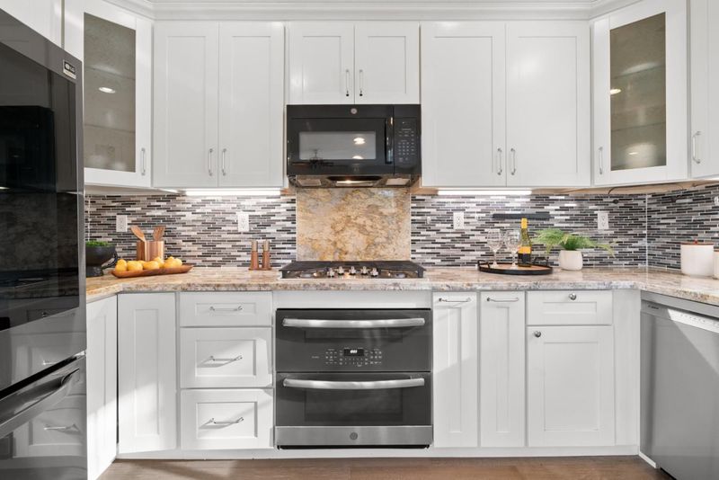 - Cooktop - Gas, Countertop - Marble, Dishwasher, Garbage Disposal, Hookups - Gas, Microwave, Oven - Gas, Pantry, Refrigerator