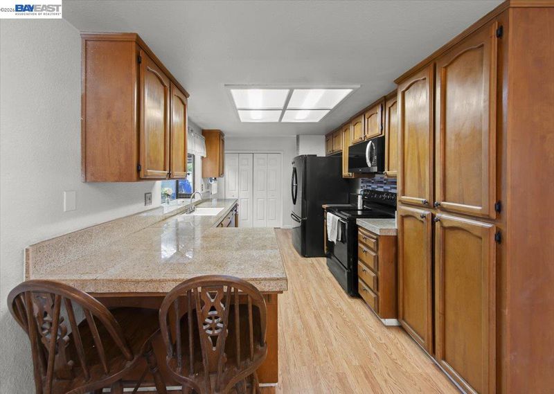 - Dishwasher, Electric Range, Microwave, Refrigerator, Dryer, Washer, Tankless Water Heater, Tile Counters, Eat-in Kitchen, Electric Range/Cooktop, Disposal