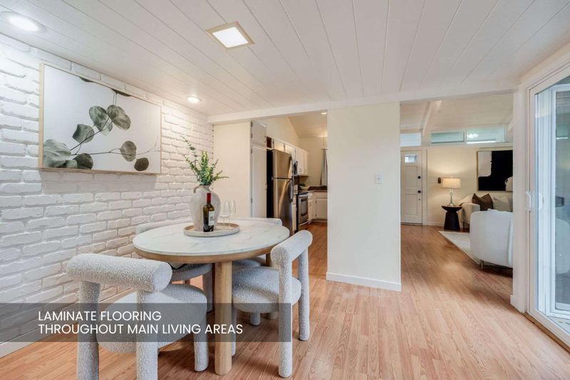 718 Millich Drive Unit B is single-level end-unit 2-bedroom 2-bath home offering 1,018 sq.ft. of living space in desirable Campbell location. Property is part of Valley Forge Condominium Association #1 HOA, community of 20 townhouse-style condominiums. Vaulted ceilings with exposed beams create openness while large sliding glass doors bring natural light into living and dining areas and open to private deck. Brick accent wall adds texture and a cozy fireplace serves as focal point in living room. Kitchen features granite countertops, oven range, microwave hood, dishwasher, garbage disposal, new refrigerator and ample cabinetry. Laminate flooring runs through main living areas complemented by tile in both bathrooms. Primary bedroom includes ensuite bathroom with shower stall and his-and-her closets. Second bedroom features built-in closet. Hall bathroom offers shower-tub combo. Bathrooms refreshed with new lighting, quartz countertops, undermount sinks and new faucets. In-unit washer and dryer add convenience. Outside backyard offers room to unwind with storage shed. Home includes one carport and additional storage area. Walking distance to shopping public transportation and parks. Easy access to San Tomas Expressway Hamilton Avenue and freeways 17 and 280.