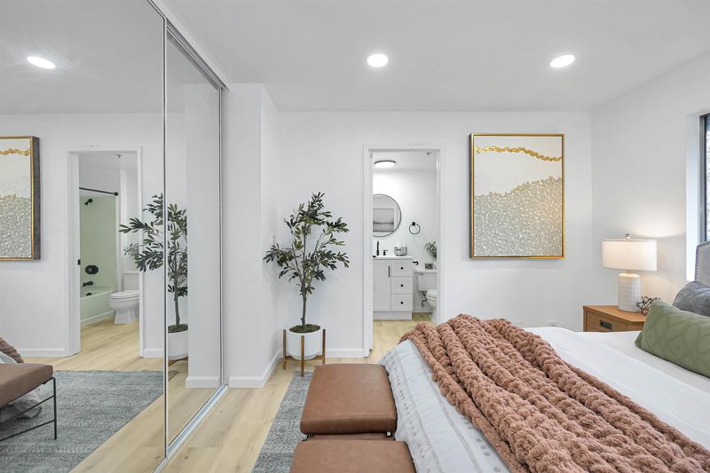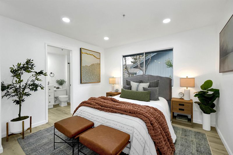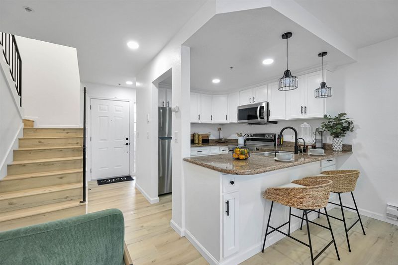 Turnkey, fully renovated townhome-style condo in a prime Castro Valley location! This 2-story unit stands out from the rest with everything upgraded from top to bottom. Enjoy brand-new floors & paint throughout, updated vanities, modern light fixtures, new closet doors, new digital thermostats, new tea water heater and all-new appliances —every detail has been curated for turnkey living. The open-concept main level offers a sophisticated flow between the living area and kitchen, complemented by a convenient half bath. Step outside to a private, low-maintenance backyard featuring new synthetic grass and fresh mulch. Upstairs, 2 spacious bedrooms, each with its own en-suite bathroom, plus a landing with an in-unit washer and dryer discreetly tucked away. A truly rare feature for the area, the home includes 2 dedicated parking spaces (right in front of the home,1 covered 1 uncovered) along with guest parking. HOA dues include water and garbage. Tucked away off Redwood Road yet just moments from Downtown Castro Valley, this prime location offers a short walk to Castro Village Shopping Center and BART, plus easy access to dining, shopping, commuting routes, and top-rated Castro Valley schools. This is the best unit in the community—and it won’t last long.
