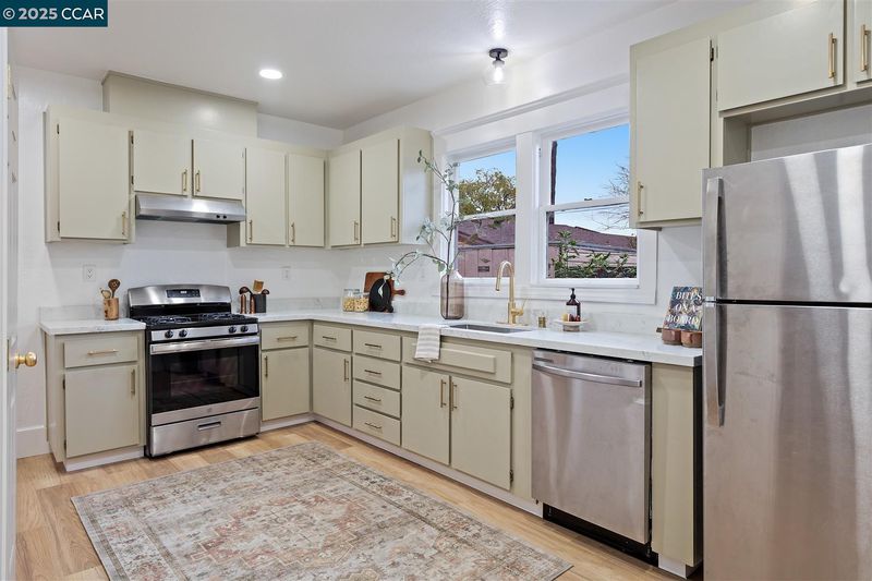 - Dishwasher, Gas Range, Free-Standing Range, Refrigerator, Gas Water Heater, Counter - Solid Surface, Disposal, Gas Range/Cooktop, Range/Oven Free Standing, Updated Kitchen