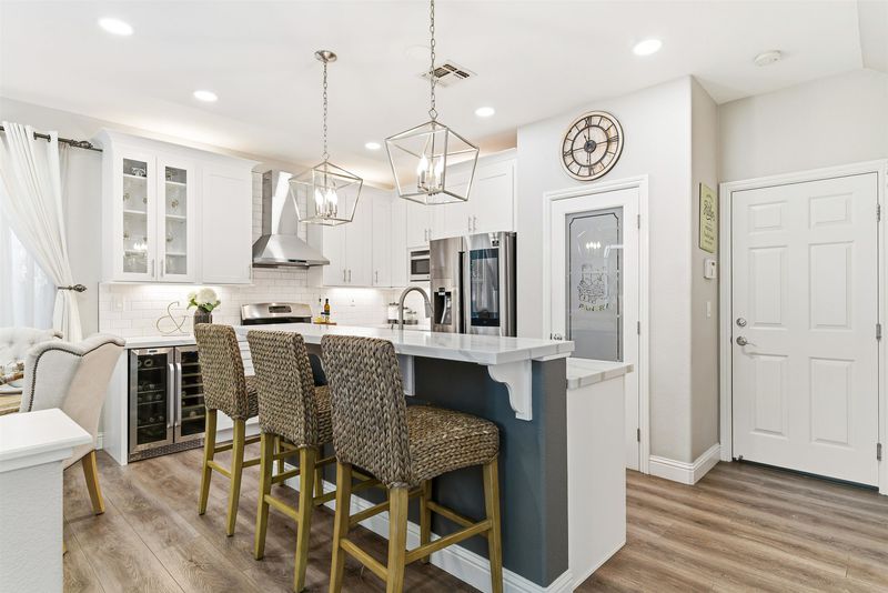 This stunning 3 BDRM, 2.5 BA, 2- car attached garage shows like a model home with 1,552 sq ft of well-designed living space. Step inside the bright & inviting open floor plan, freshly updated for today’s modern living. The gorgeous kitchen is a Chef’s delight, boasting Quartz counter tops with custom tile back splash, newer wood cabinetry with the added touch of under mount lighting & above cabinet lighting, top of the line stainless appliances including a built-in wine cooler & pantry closet. The Island has an apron style sink with bar seating providing a seamless flow to the spacious living & dining room, the upgraded Luxury Vinyl flooring is perfect for large gatherings. The upper level has 3 generously sized bedrooms, which includes the primary bedroom suite. Every room reflects pride of ownership & features stylish finishes including ceiling LED lighting, custom light fixtures, lighted bathroom mirrors. A spacious fenced backyard, tile patio w a wood Gazebo, lush lawn area with colorful plants & fruit trees perfect for outdoor enjoyment!