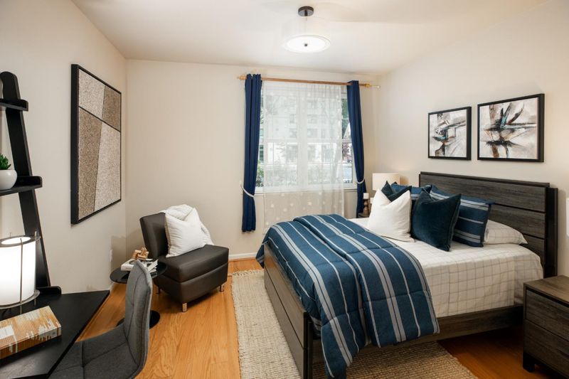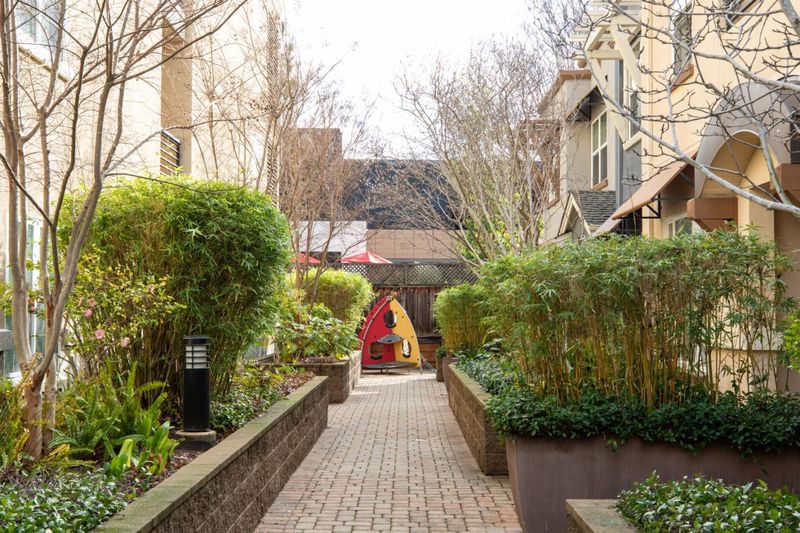Beautiful ground-level unit in the sought-after Peninsula Real Los Altos gated complex. Spacious and well-maintained with a fluid floor plan and private patio perfect for entertaining and relaxing, offering an effortless urban lifestyle year-round. The well-appointed kitchen features granite countertops, stainless steel appliances, and a breakfast bar. Hardwood floors throughout. Generous bedrooms, a built-in desk nook, and plenty of storage. Additional amenities include A/C, in-unit washer/dryer, two assigned parking spaces, and two large storage units in the secure underground parking level. Residents enjoy gathering around the lush pool and heated spa. Children love the small playground and beautifully landscaped grounds. The complex has an active Google Group where neighbors connect, share tips, and build community. Steps from Village Court's restaurants, cafes, and Dittmer's, as well as The Village at San Antonio Center (Safeway, Trader Joe's, restaurants, hotel), Whole Foods, and Adobe Animal Hospital. Top-rated Los Altos schools including Santa Rita Elementary and Egan Jr. High nearby (Buyer to verify). A short drive to Google, Meta, the tech corridor, Stanford University, downtown Los Altos, Mountain View, Palo Alto, and both San Francisco and San Jose airports.