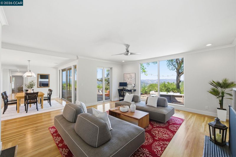 Experience the pinnacle of sophisticated modern design in this completely reimagined, single-level Orinda luxury estate, offering a rare combination of contemporary architecture and stunning views of the San Pablo Reservoir and Bay. This light-drenched sanctuary is defined by floor-to-ceiling glass walls that create incredible volume and a seamless indoor-outdoor flow, centered around a gourmet chef’s kitchen engineered with a massive central island and dual dishwashers for high-end entertaining. Set on a rare approx 1.3-acre lot near top-tier Orinda schools, downtown dining and hiking trails, the expansive grounds feature a private soccer field with the potential for a resort-style swimming pool or pickleball court. The property is uniquely equipped for multi-generational living and hobbyists, featuring a detached 2-bedroom ADU with a full kitchen and a four-car garage with a car lift. This prime California oasis perfectly balances high-tech amenities with vista full natural beauty, making it a premier choice for buyers seeking modern luxury and privacy in the East Bay.
