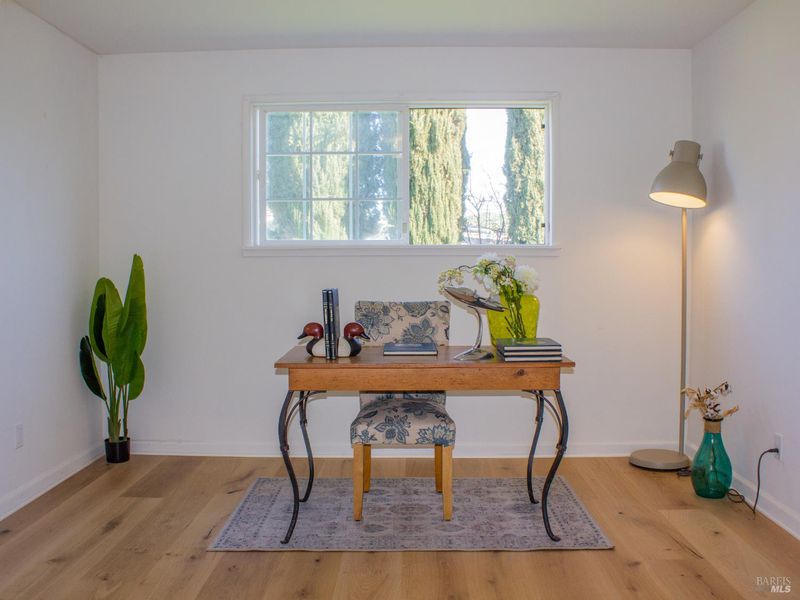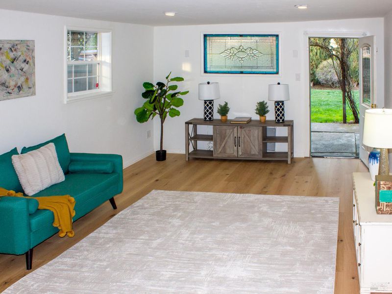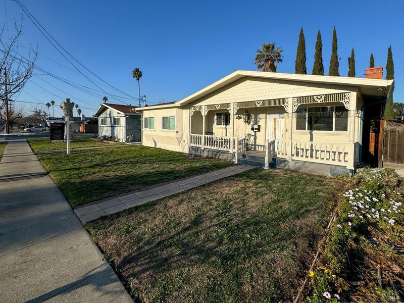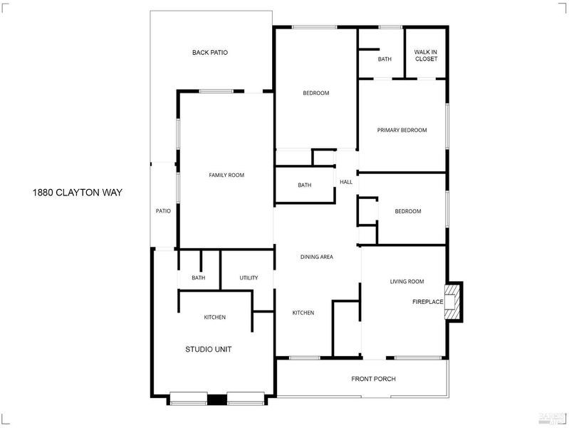 Comfortable house with updated features, sizable backyard, and separate studio unit with kitchen and full bathroom for extended family, guests, or rental income. Come see how you can make this home your own amazing oasis. Front porch has gingerbread details and faces southwest for perfect afternoon sun. Enter the house into a welcoming living room with cozy fireplace. Into the kitchen/dining room for a nice meal and onto the family room with backyard access. Or to the primary suite with walk-in closet and your own personal full bathroom. Use one of the two other bedrooms in the main house for an office, workout room, library, or game room. Family room has space for a home theater, pool table, or play area. Backyard has grass lawn bordered with cypress trees. Great space for a play-set, throwing a ball, or a vegetable garden. Dogs will love it here. House has AC, laundry, and new floors. House has solar panels to support a smart lifestyle. Includes off street parking. Only 8 miles to Mt Diablo State Park entrance for hiking and biking adventures. From summit of Mt Diablo, visibility on a clear day can extend 200 miles. Concord has year-round recreation and natural beauty. The 2nd unit with kitchen and private entrance opens up a world of possibilities. A great spot for commuters and those seeking more space and value in the Bay Area. Come see what dreams you can create at 1880 Clayton Way.