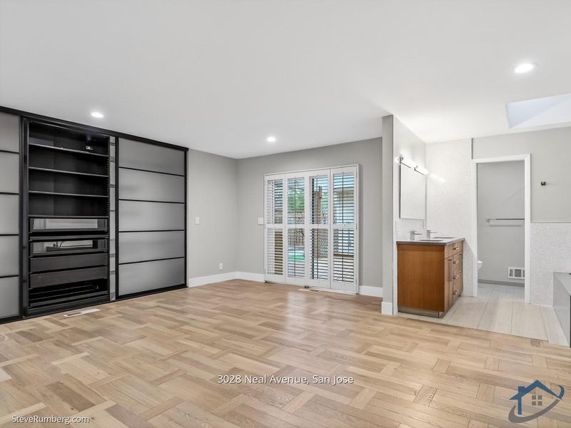Stunning, large, contemporary 5-br + ADU studio! Gourmet chef's kitchen with Sub-Zero refrigerator/freezer, Miele oven/range, Marvel wine fridge/beverage center, quiet and sleek Bosch dishwasher, Sharp microwave drawer with concealed controls, over-the-stove pot filler, walk-in pantry, and skylight with remote-controlled window opener and shade. Large living room with dining area, vaulted ceilings, and bar sink for entertaining. Oversize primary bedroom with closet wall, spa tub, and skylight with remote-controlled window opener and shade. Two additional bedrooms overlook the front of the house, and another bedroom has sliding door access to the rear yard. Large backyard oasis with pergola, BBQ island, putting green, and more! Privacy and luxury are yours in this designer, modern home! Nestled at the end of a long, private driveway. Convenient and centrally located just a short walk to Santana Row, Valley Fair Shopping Center, and all major commute routes, including highways 17/880, 280, and San Tomas Expressway.