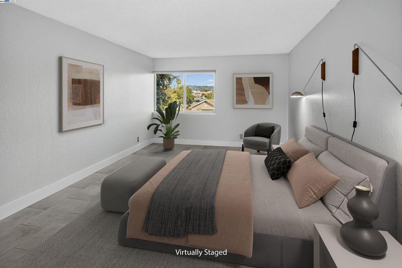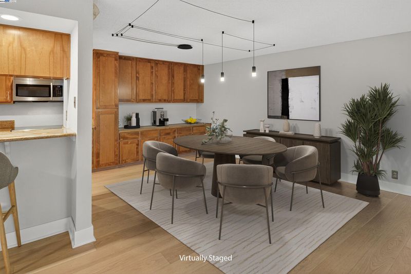 Tucked in a private setting just steps from downtown San Leandro and BART, this unit has one of the largest floor plans in the community—1,728 sq ft of comfortable, contemporary living space. Enjoy a peaceful wraparound balcony overlooking lush green space, ideal for morning coffee or evening relaxation. The updated kitchen features shaker-style cabinets, granite countertops, a breakfast bar, and additional built-in cabinetry in the dining area. The open-concept kitchen/living/dining spaces include white oak engineered hardwood flooring, modern lighting, and a cozy gas-burning fireplace. A versatile bonus area off the living room is perfect for a home office or reading nook. Retreat to the spacious primary suite with a remodeled spa-inspired bathroom showcasing double sinks, quartz countertops, Grohe fixtures, a rain showerhead, marble shower floor, and subway tile walls. The second bedroom features a Murphy bed and a large walk-in closet—perfect for guests or a flex space. Additional highlights include dual-pane windows, secure parking, a Nest thermostat, in-unit laundry, porcelain tile flooring in the entry and baths, and new closet doors in the primary suite. An exceptional blend of space, privacy, and convenience—just minutes to shops, dining, and more!