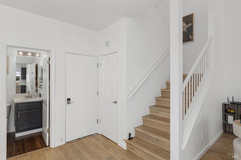Located in the Cambridge Estates community of Fairfield, this corner unit condo offers a functional layout, great natural light, and a convenient setting within the development. Positioned near Travis Air Force Base and within walking distance to Vanden High School, the location is ideal for both everyday living and accessibility. The home sits near the front of the community, just across from the pool and close to parking, making it easy to come and go. Inside, the layout feels open and inviting with tall ceilings and an abundance of natural light. Laminate flooring runs throughout the downstairs, and the living room features a fireplace and flows seamlessly into the dining area and kitchen. The kitchen has been updated with painted cabinetry, a modern tile backsplash, quartz countertops, breakfast bar seating, an electric cooktop, built-in microwave, and dishwasher. A powder room is conveniently located on the main level. Upstairs, all three bedrooms are thoughtfully laid out, including a spacious primary suite with vaulted ceilings, great natural light, and an ensuite bathroom with dual sink vanities and a walk-in closet. Plantation shutters are featured throughout the home, adding both style and functionality. Additional highlights include smart lighting and features throughout, as well as a garage with added insulation and epoxy flooring. With a well-designed layout, modern updates, and a convenient location within Cambridge Estates, this home offers comfort, ease, and a great opportunity to own in Fairfield.