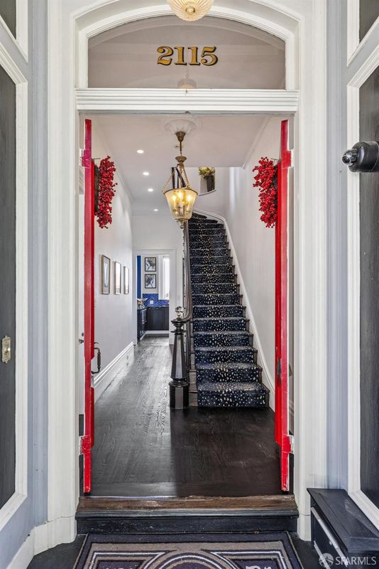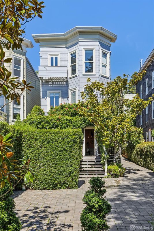 A Magnificent c.1900 Queen Anne Italianate Victorian home of 3,500 square feet on 4 levels. Entering at the 2115 Bush Street front door the grand scale of this home immediately comes into focus. Large Living Room with a decorative fireplace, cathedral ceilings. Continue through the main floor to an elegant designer Dining Room which opens to the Kitchen for fine dining with Family and Friends. Returning to the Entry Foyer ascend the staircase to Bedrooms and Baths Level. Primary Bedroom at the top of the stairs has southern exposure and a large Primary Bathroom. At the opposite end of the hallway is a laundry stack, secondary Bathroom and 2 rooms. Going down 2 flights of stairs to a living level with a Large Bedroom suite & Private Bathroom, and a large Sitting/Living Area and rear access to a covered Private Deck and the property's private parking. Descend the circular staircase to the 1st level of the home structure to a fitness room with full bath and a second means of egress to the previously described rear areas including a fire pit sitting area and separate sitting space. THE Piece de Resistance is a 10+ seating Private Movie Theater which must be seen to appreciated. A very unique touch to an exceptional Designer Inspired remodel of this lovely home with extensive Dolby inspired video and sound features. Come see us.
