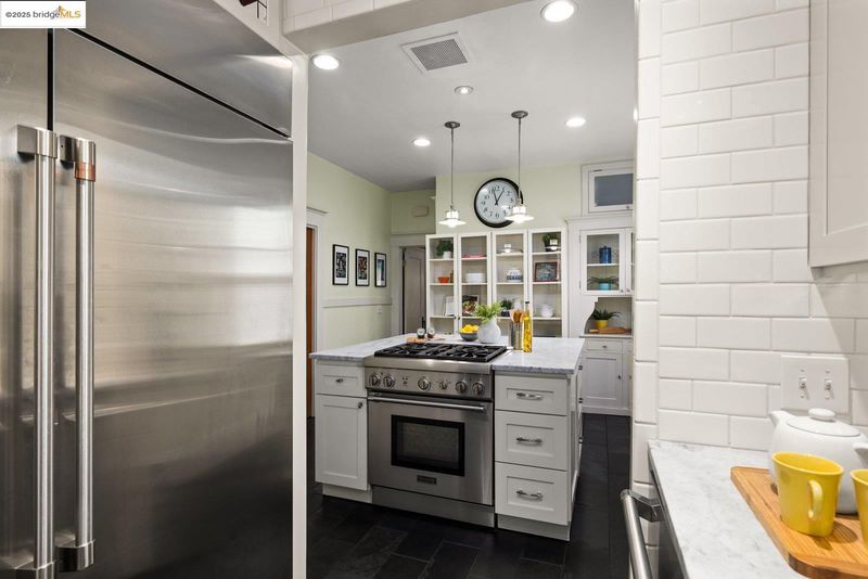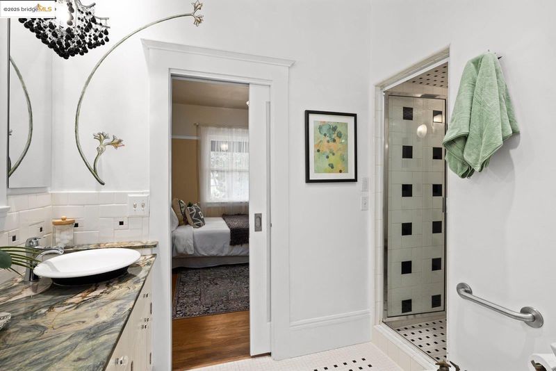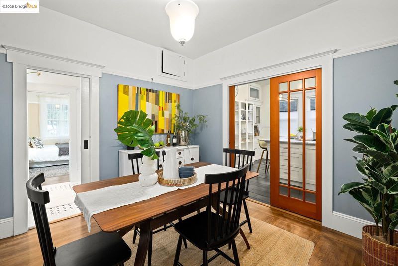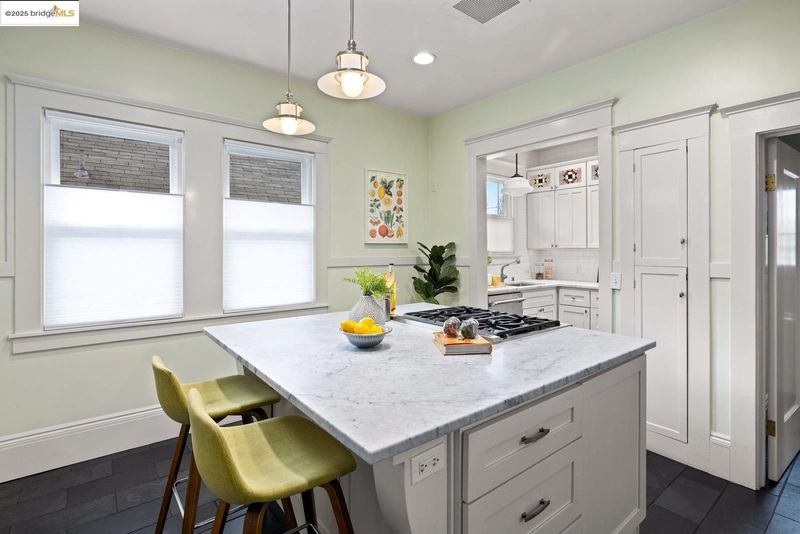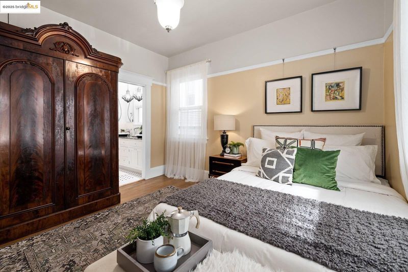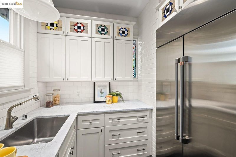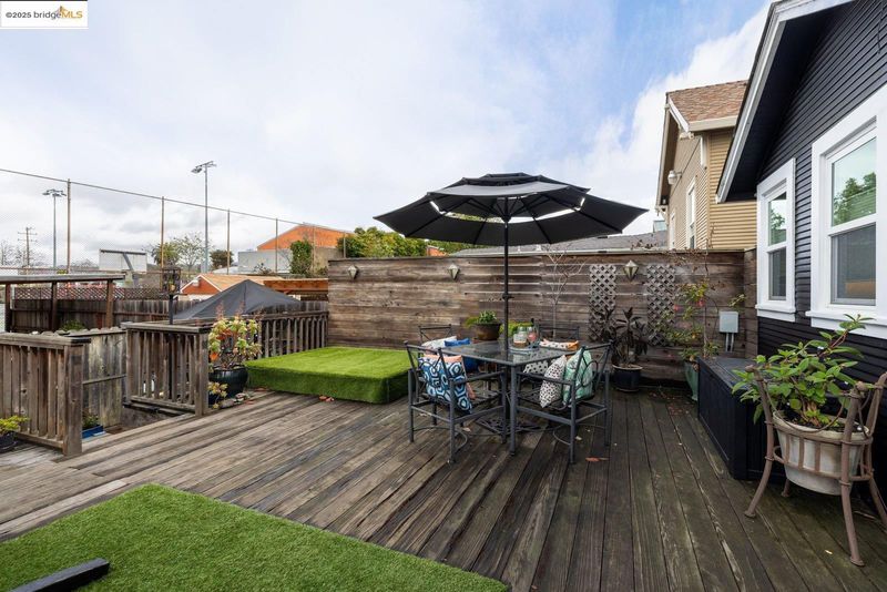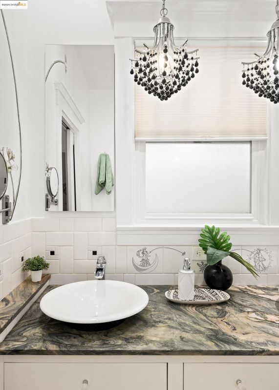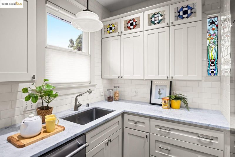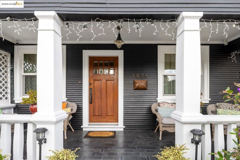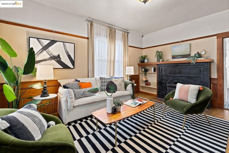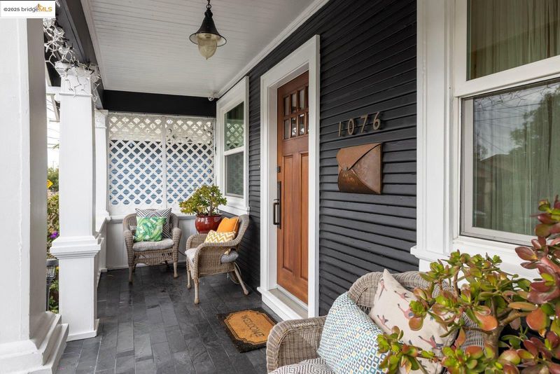 An artful reimagining of a classic Craftsman, this enchanting 2bdrm/1ba bungalow sits in the heart of Oakland’s beloved Golden Gate district - just moments from neighborhood coffee shops, the local library, recreation center, public transit, & more. The moment you arrive, whimsy & craftsmanship take center stage. Artisan stained glass, eloquent period details & thoughtful creative touches infuse this home w/warmth & personality. Inside, natural wood wainscoting & an original stone fireplace w/gas insert anchor the living room, complemented by built-in shelving that blends beauty & function. A charming country kitchen w/custom cabinetry, a remodeled bath featuring a shower-sauna + a flexible floor plan offer comfort with refreshing versatility. Enjoy watching the world go by from the welcoming front porch, perched above meticulously crafted stone steps or retreat through the back door to an expansive private deck—lush w/potted plantings on a drip system—ideal for entertaining or quiet reflection. An oversized detached garage opens the door to endless possibilities: a creative studio, home office, hobby space, abundant storage, or potential ADU opportunity*. This is a home that delights, inspires, & invites you to make it your own! *Buyers to confirm permisable uses w/City zoning.