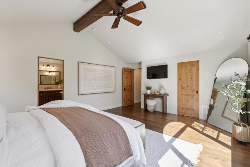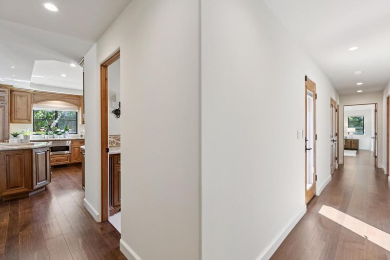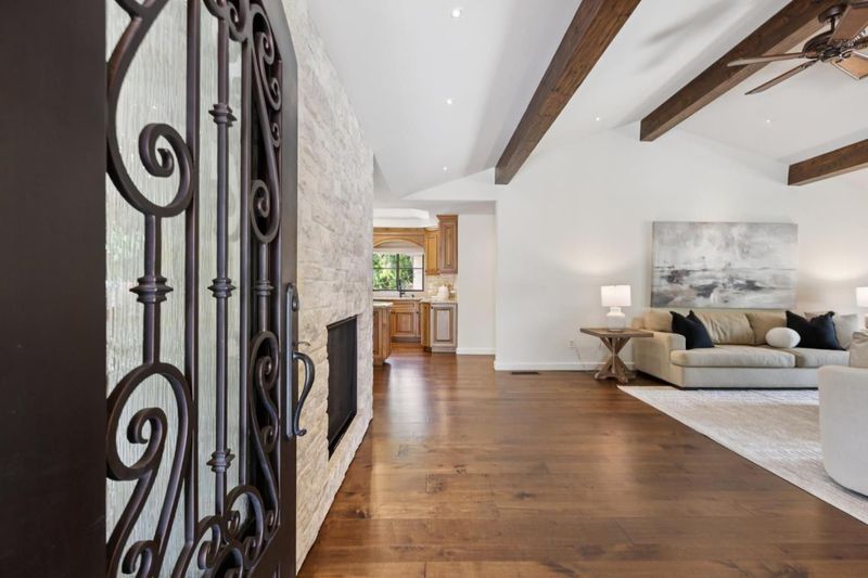 Welcoming Spanish architecture invites a peaceful ambience in Daves neighborhood! Paver stone driveway & travertine patio create beautiful backdrop to lovely property rebuilt in 2017. Generous great room & spacious dining rm w/ vaulted ceilings & dual sided limestone gas fireplace. Beautiful hwd floors flow thru interior & natural light thru lg picture windows & French doors. Out cove in dining room functions as perfect serving area w/ wine refrigerator. Kitchen blends classic materials-wood-stained cabinetry w/ granite counters & subway tile backsplash + center island. Professional grade appliances-Subzero refrig, thermador range & d/w. Primary suite has vaulted ceilings & abundance of natural light. Lg walk-in closet provides ample wardrobe storage & lovely bath has soaking tub, stall shower, dual vanities. 2 guest bedrooms have 2 closets each & share nice hall bath. Rear yard designed for both relaxation & entertaining. Lg elevated deck for outdoor dining & gathering. Meandering pathways thru garden. Jetted spa -perfect place to relax. Storage/bonus room is flexible space, accessed off lawn area. Oversized 2 car garage. Steps to Daves Elementary & quick stroll to Vasona & Oak Meadow Parks. Minutes to dwntwn LG & easy commute to Silicon Valley. Top Los Gatos schools!