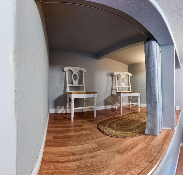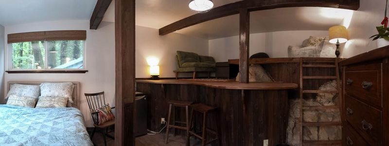 Surrounded by a tranquil setting of oak, madrone, redwood, and bay trees, this retreat gives the feeling of residing in a serene treehouse. Enjoy cozy winter evenings by the wood-burning stove and spend summer weekends nurturing fruit trees and cultivating vegetable and herb gardens for year-round satisfaction. Located in the lively community of Ben Lomond, you'll have convenient access to local dining, shopping, and the vast hiking trails of nearby state parks. With over $400,000 in enhancements throughout the property, showcasing a blend of both exterior and interior improvements that elevate the home's appeal and functionality. This property is primed for development, with plans for an Accessory Dwelling Unit (ADU) already in place. All necessary electrical and plumbing work has been completed, making it ready for your vision to come to life. Don't miss this opportunity! Discover the enchanting allure of "Pook's Hill," a historic home dating back to 1921, beautifully situated among the majestic redwoods. This carefully maintained treasure has hickory cabinetry in the kitchen, and charming exposed beams, blending its timeless character with contemporary comforts.