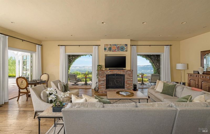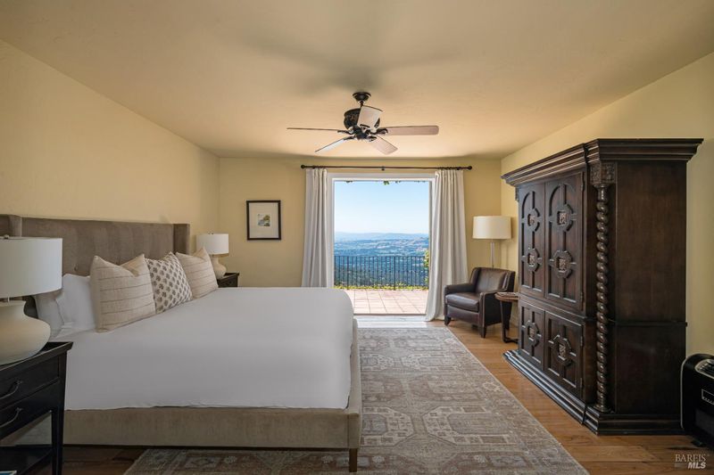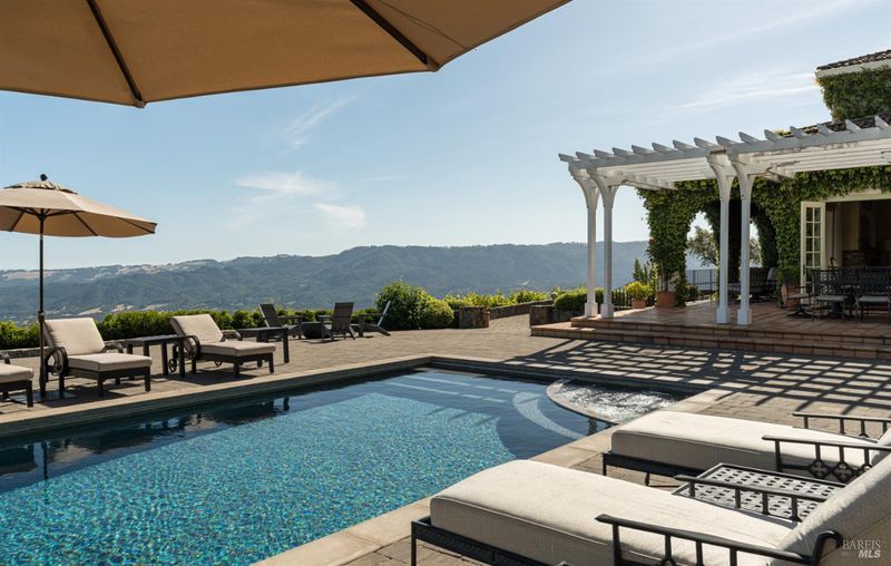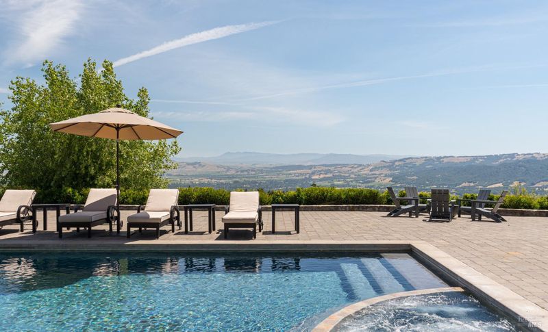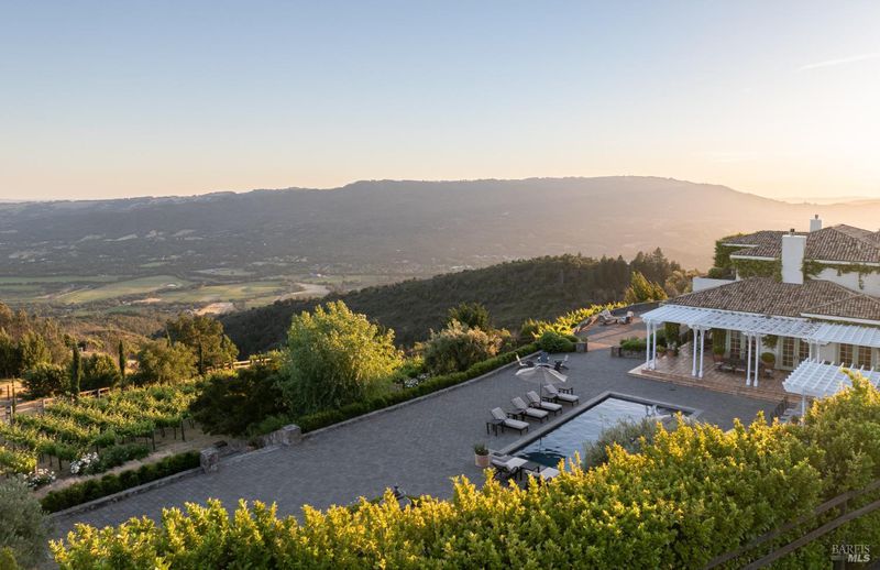 Perched on a hillside overlooking Sonoma Valley and the San Francisco Bay, this custom-built villa offers luxury, privacy, and breathtaking views. The home blends classic charm with modern sophistication, creating a serene and inviting atmosphere. Inside, the spacious floor plan features multiple living areas, rich hardwood floors, high ceilings and custom tile finishes. Includes 4 bedrooms, two of which are luxurious suites with private bathrooms and balcony access. Every room offers access to balconies or patios, where you can take in the stunning vistas. Expansive outdoor spaces within 4.73+- acres are perfect for entertaining and relaxation, featuring an in-ground pool and spa with panoramic views. A fully equipped outdoor kitchen and multiple sitting areas for al fresco dining. Conveniently located to the historic Sonoma Plaza, wineries, restaurants, and shops, and San Francisco an hour + away. The property features a gated entrance and a secondary service entrance for added convenience and privacy. Currently a highly successful vacation rental, this home offers a semi turn-key, lease-option or extended close of escrow opportunity.