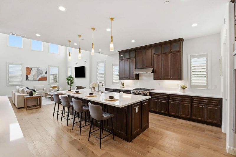 Cooktop - Gas, Countertop - Quartz, Dishwasher, Freezer, Garbage Disposal, Ice Maker, Island, Island with Sink, Microwave, Oven - Built-In, Oven Range - Built-In, Gas, Pantry, Refrigerator