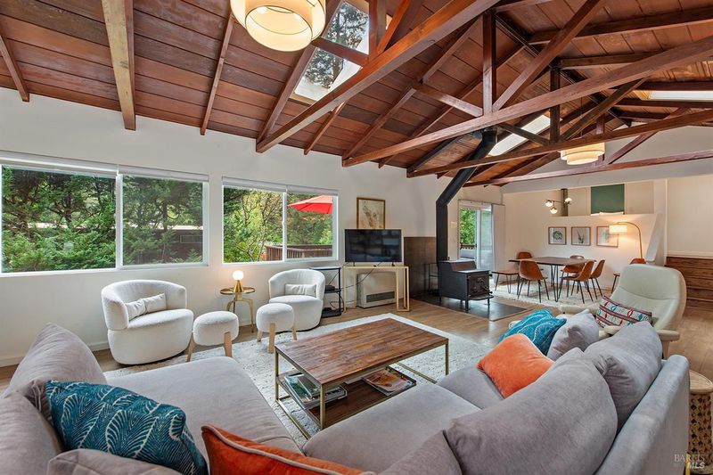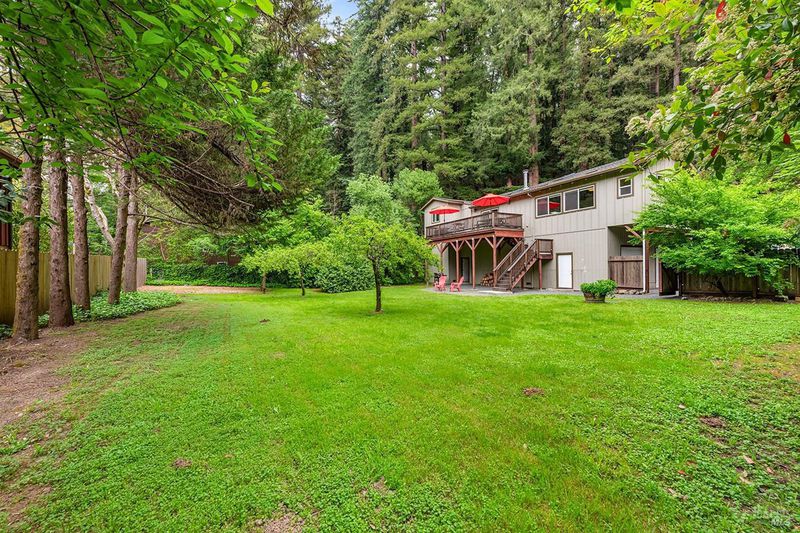 Just steps from the Russian River with a huge, flat, sun-drenched lot, this updated 3-bedroom home offers the perfect blend of outdoor enjoyment and peaceful modern living nestled between Guerneville and Forestville. The thoughtfully designed home sits on a generous 0.3-acre property, featuring a spacious open floor plan with vaulted ceilings that create an airy, welcoming atmosphere. The great room serves as the heart of the home, ideal for both everyday living and entertaining. Step outside to the impressive deck surrounded by majestic redwoodsperfect for morning coffee or evening gatherings. The backyard already features several established fruit trees and lots of space for the whole family. Complete with a two-car garage which is currently used as a game room, the home also has a large storage space under the house. This property combines practical amenities with the natural beauty of wine country living, all within walking distance to river adventures.
