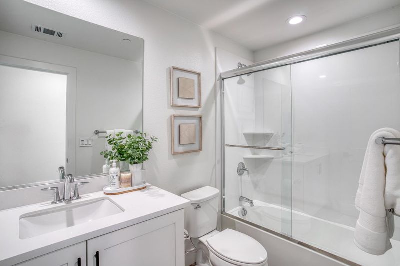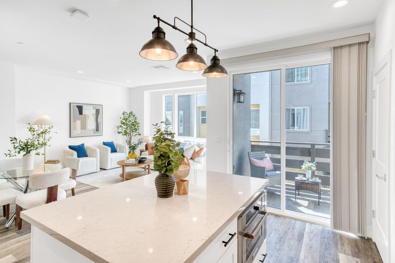 Luxury urban living in Milpitas.This immaculate 3-bedrooms townhouse coveted Parkside community is just steps from Tango Park. The bright and open second level includes a spacious living room, a bedroom with full bath, private patio, kitchen with quartz countertops, white cabinets, full tile backsplash, kitchen island, 5 heads gas stove range and side by side stainless steel refrigerator etc. Upstairs, the primary suite boasts a walk-in closet, elegant dual sinks vanity, tub and separate toilet space. Other features includes central air conditioning, double pane window, pendant lights over kitchen island, carpet in all bedrooms and stairs, and much more. An attached two-car garage provides ample storage space. Conveniently located near the Great Mall, Trader Joes, and Costco, with BART just a short walk away for seamless commuting to San Francisco and beyond.