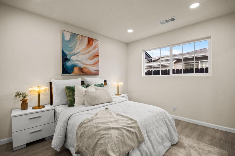 Nestled in the desirable Hill Vista community, this beautifully updated 5-bedroom, 3-bath single-level home offers the perfect blend of space, style, and convenience. The open, light-filled floor plan features large windows and flows seamlessly into the spacious family room with vaulted ceilings - ideal for everyday living and entertaining. The updated kitchen showcases modern countertops and new stainless-steel appliances, including a refrigerator, dishwasher, stove, and range hood. Five generously sized bedrooms provide excellent flexibility for families, home offices, or multi-generational living, including a private primary suite with an en-suite bath. Recent upgrades include new flooring, fresh interior paint, refinished doors, updated bathroom cabinets and mirrors, new washer and dryer, new toilets, garbage disposal, and upgraded bathroom exhaust fans. Enjoy a spacious front and backyard, perfect for outdoor relaxation. Conveniently located near Newark Lake, Newark Community Park, major freeways (880 & 84), and top Silicon Valley employers such as Tesla, Meta, Amazon, Google, and Lucid. Move-in ready and a must-see!