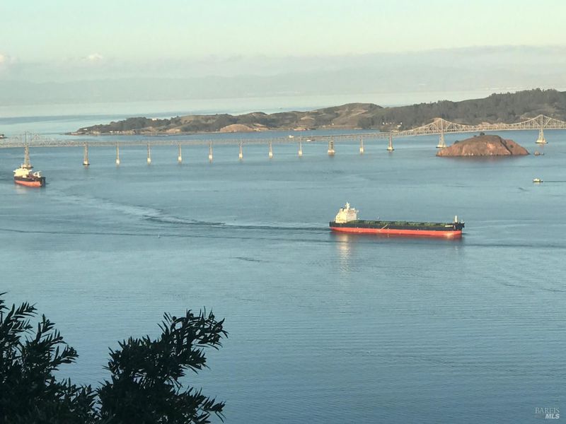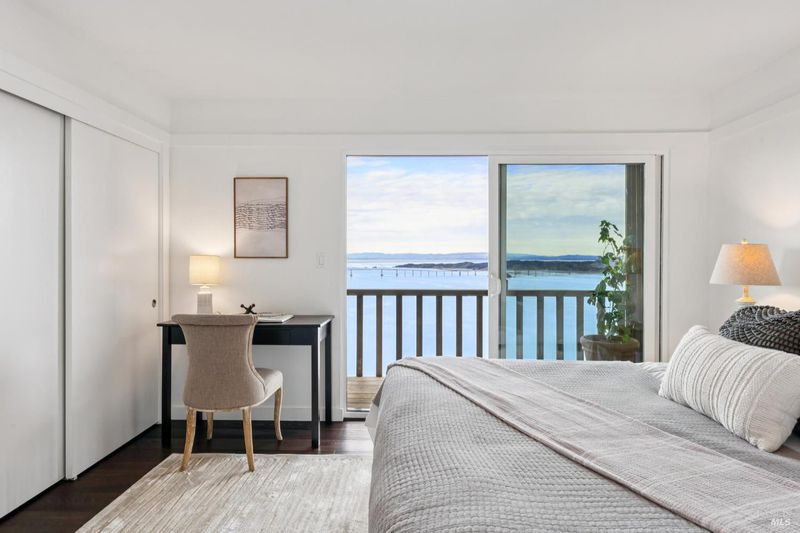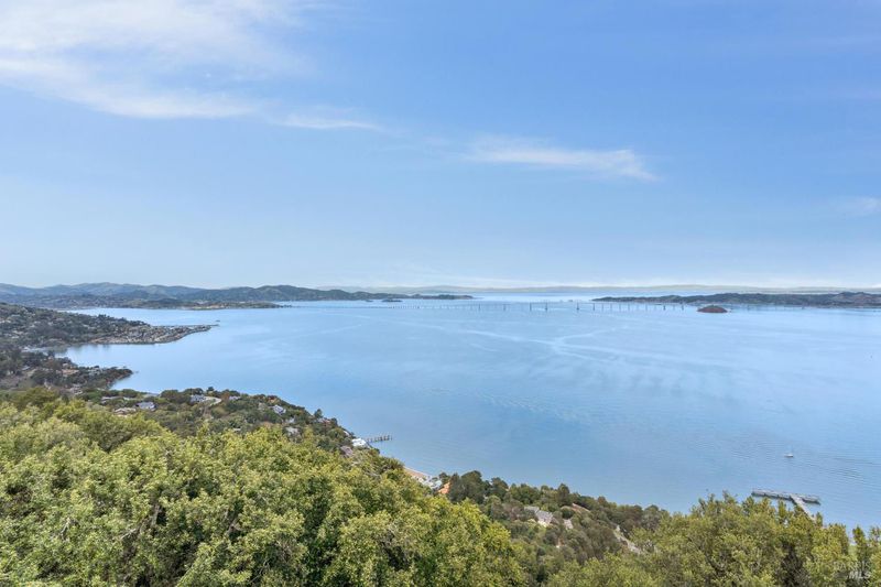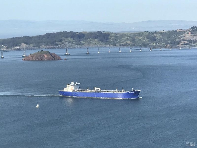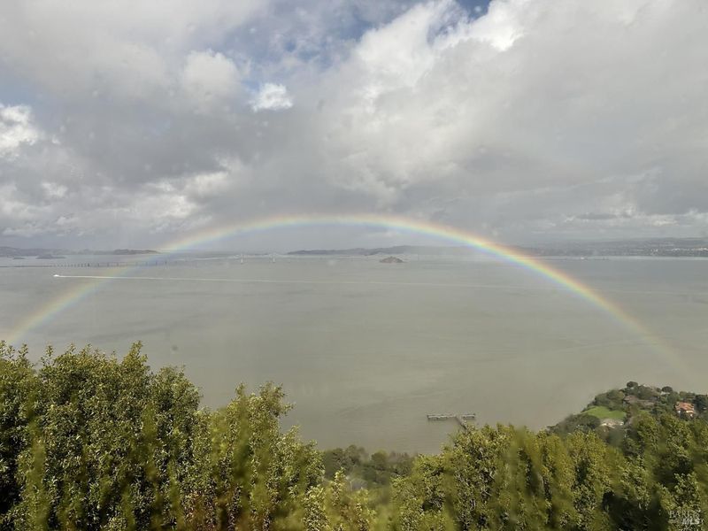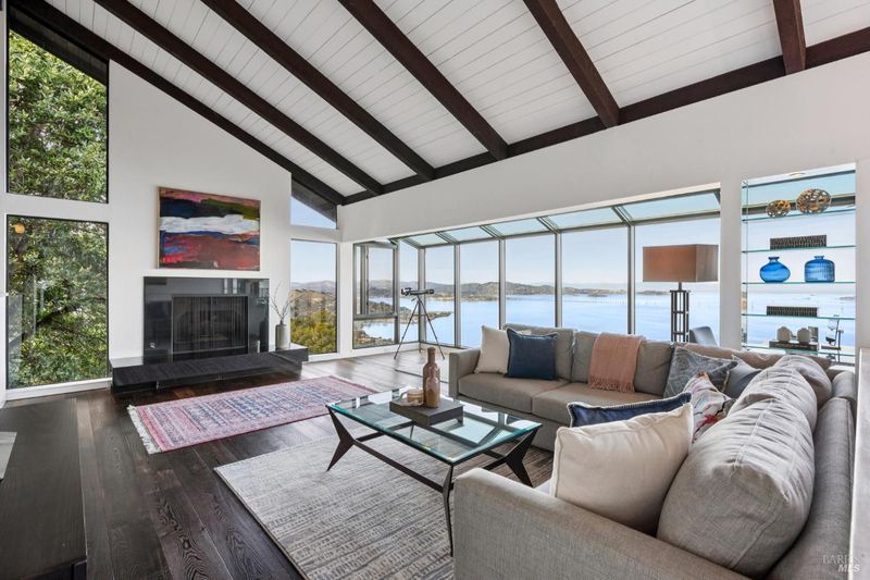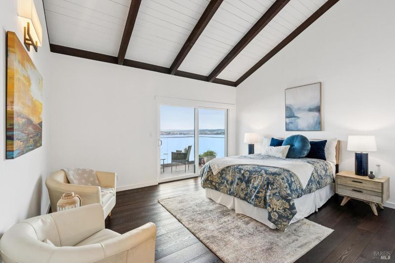 This 3 BD/2 BA light-filled residence at the top of prestigious Mt. Tiburon offers unobstructed 180-degree North Bay views from every room. A solid bank of floor-to-ceiling windows highlight the boundless bay views, complemented by vaulted ceilings with beams, hardwood floors, and an open floor plan with kitchen, dining area, and spacious living room. The primary bedroom is located on the main level and includes a balcony, walk-in closet, and en suite bath. The kitchen offers ample cabinetry, stovetop peninsula and granite countertops. The lower-level features two spacious bedrooms with sliders to a full-length balcony, a full bath featuring a large, jetted tub with bay views, and a laundry area. Large balconies on each level provide comfortable outdoor space. The front deck includes terraced landscaping and a seating bench. Ample storage throughout, with a two-car carport. A short walk to expansive open space hiking trails. It is conveniently located just minutes away from downtown Tiburon. ferry service, waterfront dining, and within the award-winning Reed School District.