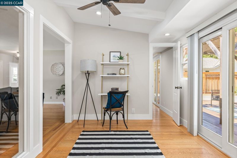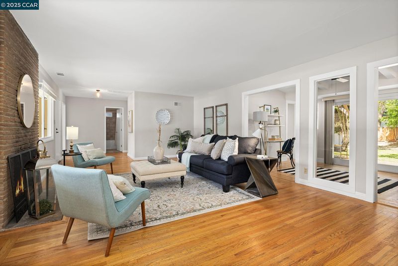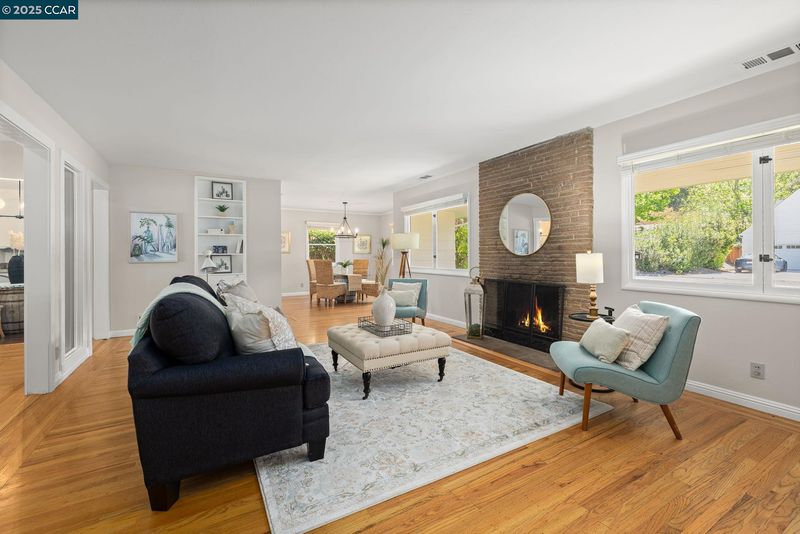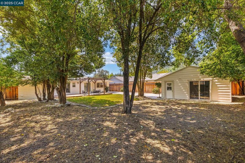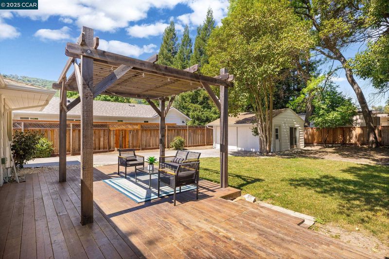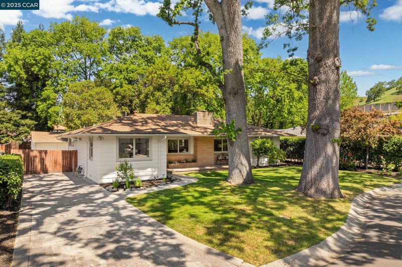 Nestled at the end of a serene street in Westside Alamo, this single-level home offers timeless appeal, flexible living spaces & amazing outdoor space on a beautifully tree-lined lot. The home features 3 bedrooms & 3 full baths, including a private en suite bedroom. Inside, hardwood flooring & abundant natural light create a warm, welcoming ambiance. A spacious living room with built-ins & a fireplace flows into the dining area—perfect for everyday meals or gatherings. The kitchen blends charm & function with granite countertops, stainless steel appliances, and a cozy breakfast nook. A second living area serves as a den or media space, with direct backyard access, a full bath, and a bedroom tucked privately to either side. Step outside to a generous deck shaded by a wood pergola, offering the ideal setting for outdoor dining & summer lounging. The expansive backyard provides endless possibilities to play, garden, relax beneath mature trees, or explore the potential for expansion. The detached garage offers added flexibility—perfect for a workshop, hobby room, or creative studio—while side yard access allows for RV or boat parking. Set in a tranquil, highly sought-after location near top-rated schools, trails, freeway access, Alamo Plaza and Broadway Plaza.