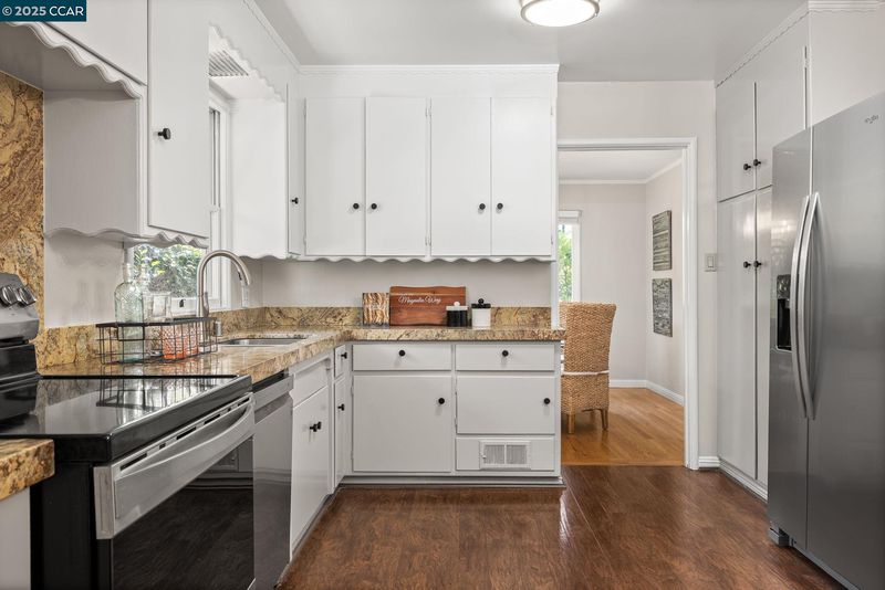 - Dishwasher, Electric Range, Disposal, Free-Standing Range, Gas Water Heater, Breakfast Nook, Counter - Stone, Eat In Kitchen, Electric Range/Cooktop, Garbage Disposal, Range/Oven Free Standing