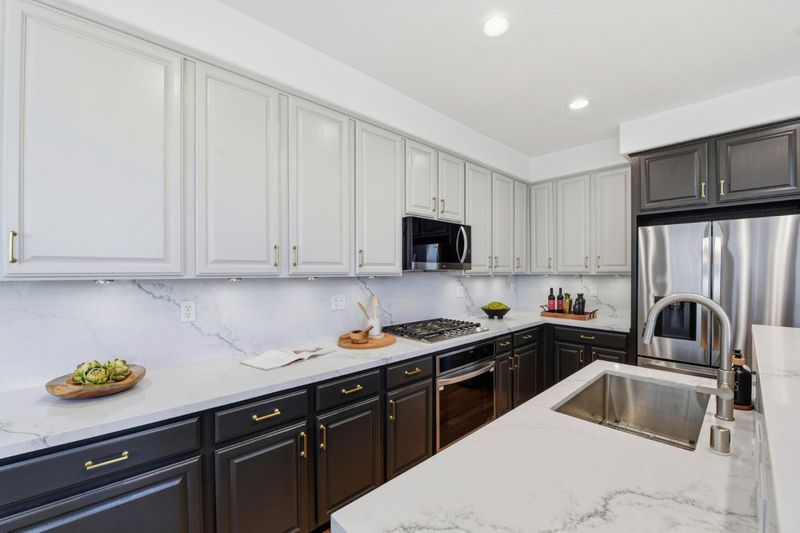 Cooktop - Gas, Countertop - Quartz, Dishwasher, Garbage Disposal, Island with Sink, Microwave, Oven - Electric, Refrigerator