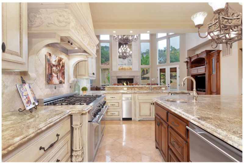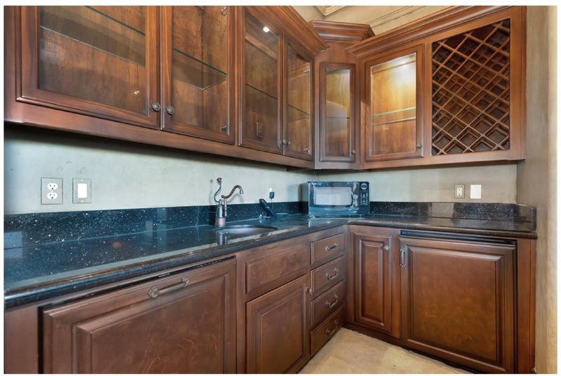 - Dishwasher, Freezer, Hood Over Range, Island, Island with Sink, Microwave, Oven Range - Gas, Pantry, Refrigerator, Wine Refrigerator