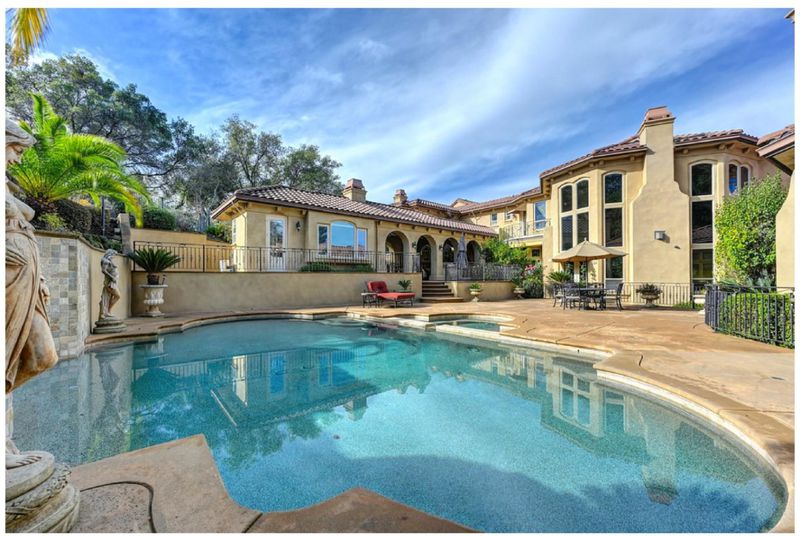 Nestled in Granite Bays coveted Los Lagos neighborhood is a Mediterranean architectural masterpeice. Boasting 1.16 acres, 5,610sf, 4 bedrooms, 4.5 baths, and featuring 5 fireplaces, 5 balconies, soaring ceilings, travertine flooring, custom ironwork and woodwork, elevator, home theater, oversized 4-car garage, resort-inspired backyard, detached casita, and so much more. The main floor centers around the generous family room and an epicurean chefs kitchen. The primary suite, occupying its own wing on the main level, includes an opulent master bath suite with his and her closets, plus a private retreat room with fireplace. Two additional bedrooms occupy the main floor each feature en-suite bathrooms and walk-in closets. Ascend in the elevator to the upper level to a second master suite and the home theater complete with a fireplace and wet bar. The backyard employs the pool+spa with a cascading waterfall, fire pit, fully equipped outdoor kitchen, outdoor fireplace, and casita with full bath. Los Lagos has exclusive amenities, including a 24/7 manned gatehouse and patrol, tennis courts, ponds, walking trails, and walk to Folsom Lake. Granite Bay is known for it top-rated schools, Folsom Lake, shopping, its abundance of restaurants, and an unparalleled outdoor lifestyle.
