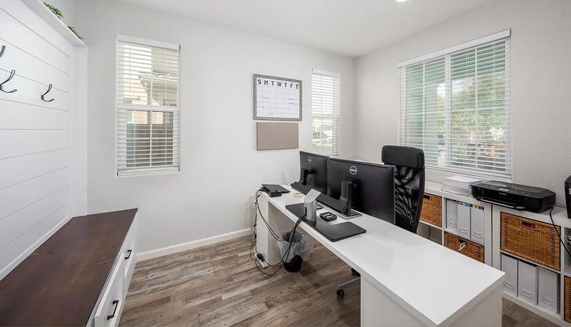 Welcome to a pristine home in Tracy with fantastic upgrades! This sprawling 2,760 sq. ft. residence offers 4 spacious bedrooms and 2.5 bathrooms, designed for modern living and effortless entertaining. An open floor plan showcases a gourmet kitchen, featuring stunning white quartz countertops and a massive 9-foot island. The adjacent living room boasts a custom 14-foot built-in entertainment center, perfect for gatherings. The first floor boasts a durable, waterproof vinyl flooring throughout and includes a versatile custom built-in mudroom/office. Retreat to the large primary bedroom, complete with a walk-in closet and a stylish shiplap accent wall. Energy efficiency meets convenience: Solar panels significantly reduce electricity costs (loan payment: $150/month), and the garage is EV-ready with a 220-volt outlet. Refrigerator, washer, and dryer are all included. The large backyard provides an ideal setting for outdoor dining and hosting guests. Enjoy unbeatable access to local amenities—conveniently located to the ACE train station and William Lowes Park.