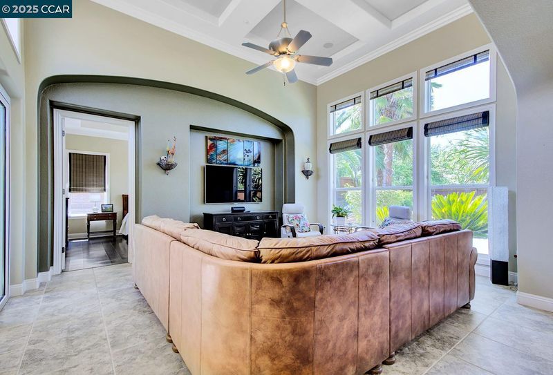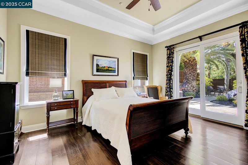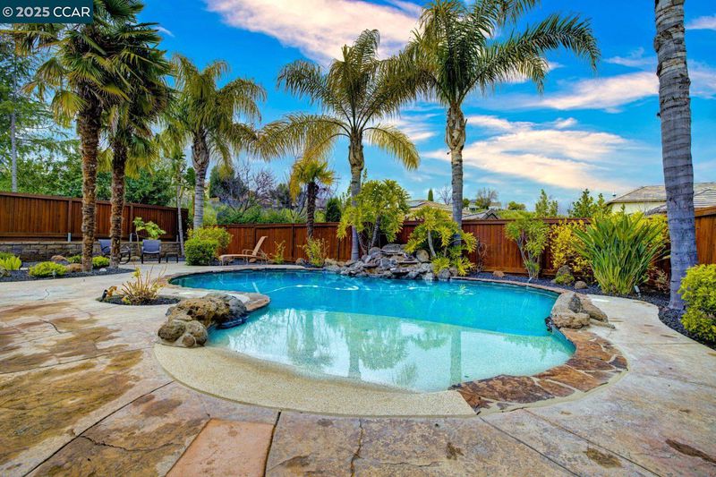 Welcome to Trilogy at the Vineyards, where retirement meets resort living! This charming Minori model home features a great room perfect for grand entertaining or low-key lounging, and the office/den is ideal for plotting your next adventure. Nestled on a premium private lot, you'll feel like you're on permanent vacation with luscious tropical landscaping and an inground Pebble Tec pool with a waterfall and beach entry. Need a break from the sun? Just extend the electric awning for optimum shade. The chef's kitchen is a culinary dream with an extra-large island, GE Profile appliances, including a 5-burner gas cooktop with decorative hood, perfect-fit refrigerator, built-in double ovens & microwave, reverse osmosis water filtration system, and a walk-in pantry. Enjoy seamless indoor-outdoor living with a slider to the backyard, and nano 4-panel glass doors leading out to a central atrium. Designer upgrades abound, including hardwood & tile floors, crown molding, decorative coffered ceilings, recessed lighting, and blackout shades. Community amenities are top-notch, with a private secure gate, clubhouse, pickleball, community pool, and more! Conveniently located near medical facilities, restaurants, shopping, transportation, and walking trails—the list goes on!