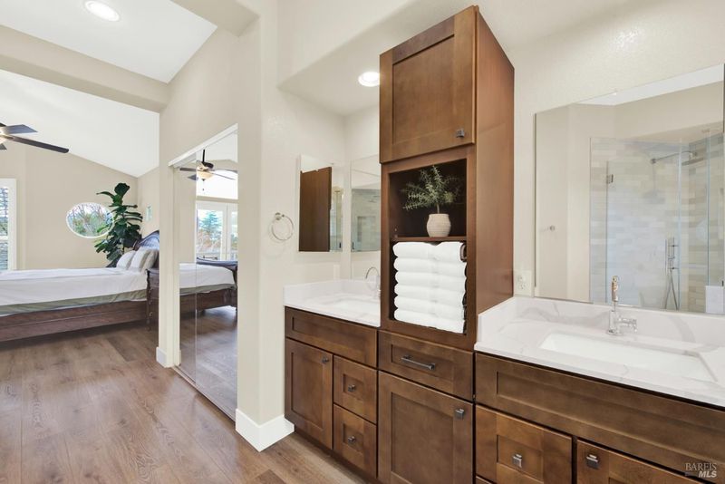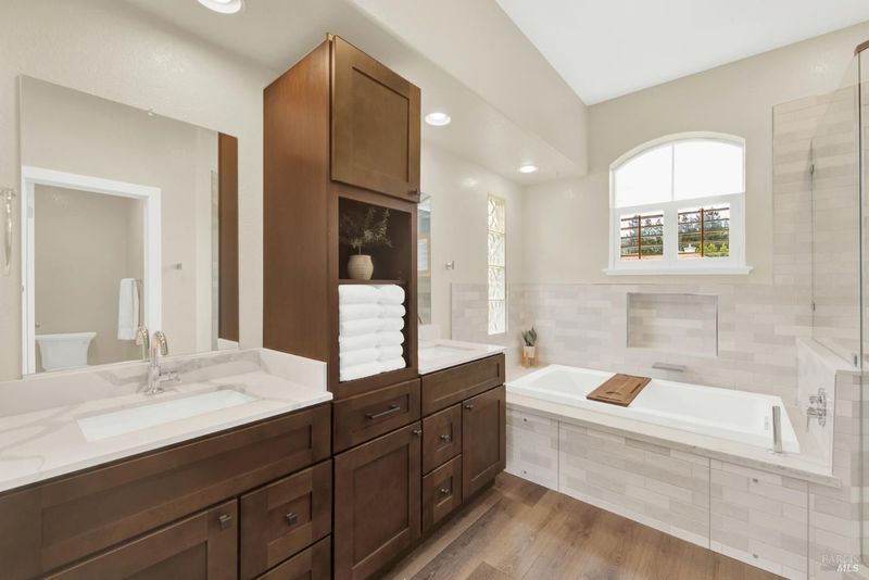 - Closet, Double Sinks, Quartz, Shower Stall(s), Skylight/Solar Tube, Soaking Tub, Walk-In Closet, Window