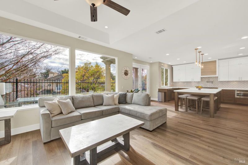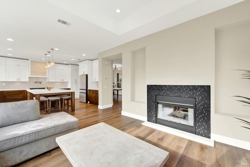 Absolutely stunning and fully remodeled, this expansive home is nestled behind the prestigious gates of Rancho Solano's First Green community. Every detail has been reimagined with style and intention, making it one of the few truly turnkey homes in this coveted neighborhood. The luxury chef's kitchen features quartz countertops, an extended island with seating, a 6-burner gas range with pot filler, and custom cabinetry with elegant uplighting. Thoughtfully designed to balance beauty and function, the kitchen anchors the home with timeless style. Soaring 18-foot ceilings create an impressive entryway, while expansive picture windows and skylights draw natural light throughout the home. The desirable layout includes a downstairs bedroom and full bath, ideal for guests, a home office, or multigenerational living. Luxury vinyl plank flooring flows throughout, while dual fireplaces in the formal living room and family room provide warmth and everyday comfort. Upstairs, the private primary suite offers a serene retreat with a fireplace, extended sitting area, and spa-inspired ensuite. French doors open to a private balcony with peekaboo views of the rolling hills and green. Additional highlights include a newer energy-efficient HVAC system, recent interior and exterior paint, and low-maintenance landscaping. Experience effortless, elevated living in a tranquil gated community known for its beauty and upscale amenities.