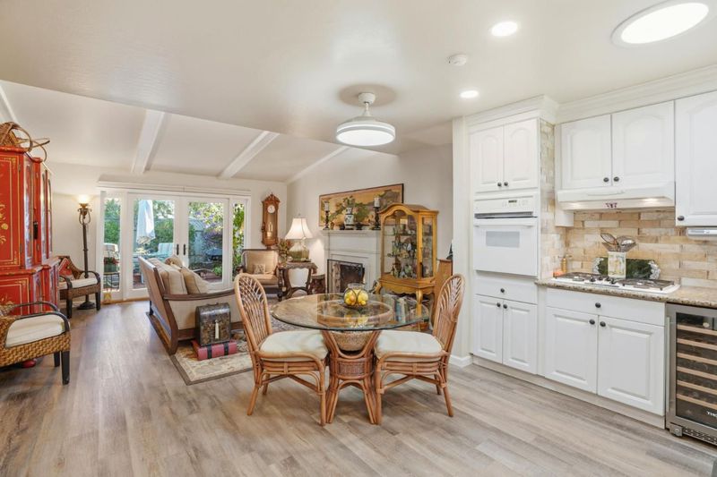 Absolutely beautiful two bedroom, two bath end unit with parking right near your front door. Many upgrades done in 2021 including installation of a wine cabinet, new front door, new refrigerator and dishwasher. The lovely gas fireplace with remote creates a warm and cozy ambiance in the living area. All the windows and door to patio have been replaced with vinyl dual pane. French doors open to the spacious brick patio that invites fun gatherings of friends and family. There is a washer/dryer combo in the patio shed for your convenience. Very well priced and ready for you to begin your Hacienda living experience.