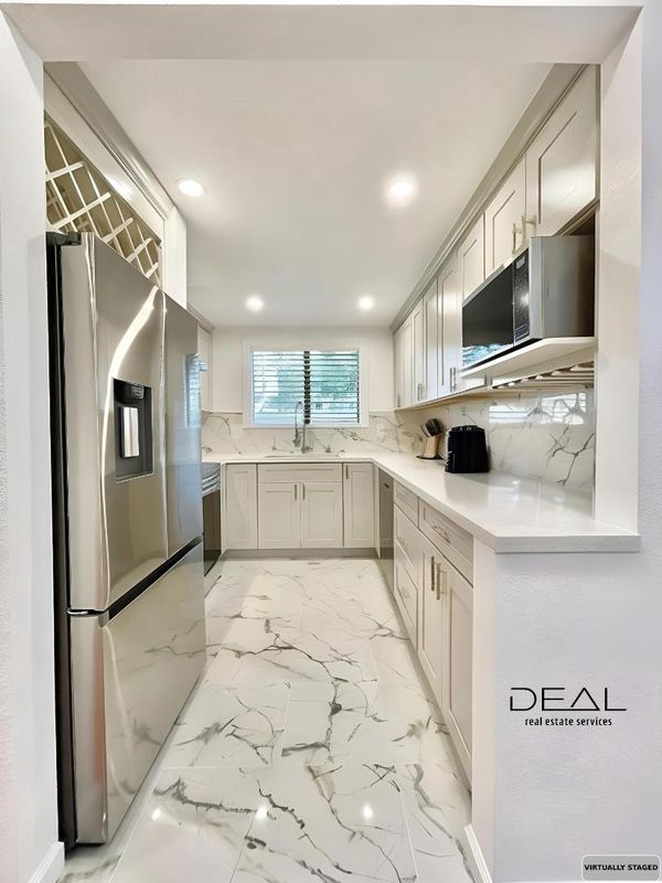 - 220 Volt Outlet, Countertop - Quartz, Dishwasher, Exhaust Fan, Garbage Disposal, Microwave, Oven Range - Electric, Pantry, Refrigerator