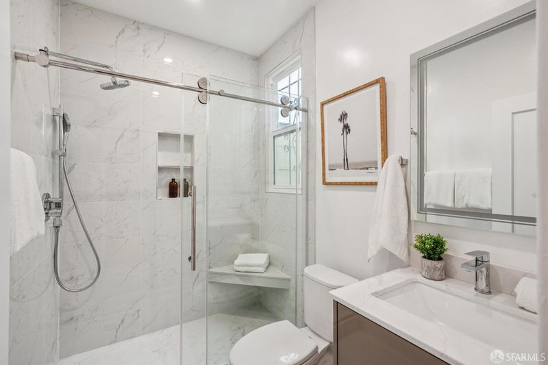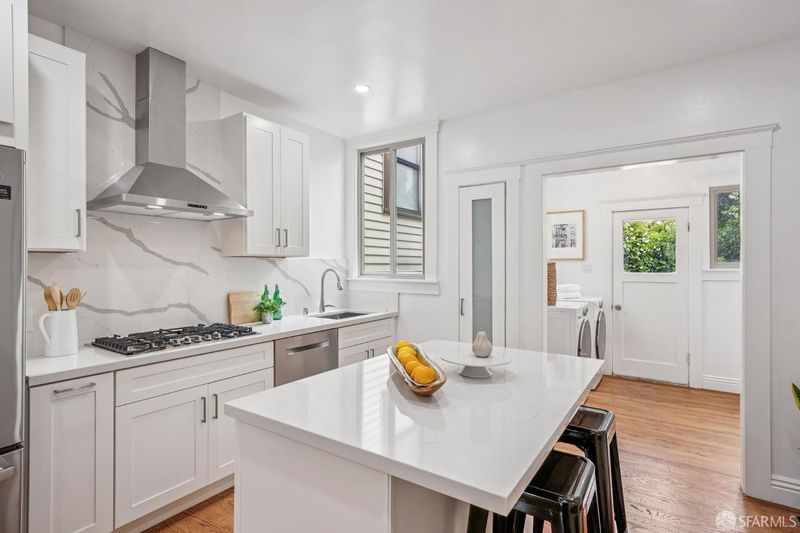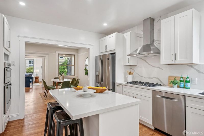 Precita Park Beauty! First time on market for this classic art deco 2 bedroom, 1 bathroom, 3 car home just one a half blocks to it's playgrounds and cafes. Period 1920's charm with high ceilings, wood floors, and big rooms, compliments the modern upgrade of newly remodeled open-plan kitchen and bath. Walk-out deck and back garden patios offer attractive indoor/outdoor living. Fresh paint, recessed lighting control, new windows, laundry mud room, and huge 3 car garage with expansion potential. Just move on in, enjoy, and possibly expand over time! The new kitchen features gorgeous quartz counters, a center island with bar-stool seating, and stainless steel appliances with gas cook top, built-in wall oven and microwave. And it opens up to a huge formal dining room - perfect for entertaining. The impeccable bathroom design features large walk-in shower with sitting bench, finished with sophisticated Carrera marble style tile and quartz vanity. It's delightful! The car enthusiasts 3-car garage has plenty of room for workshops, storage and gym, and of course, meaningful within-the-envelope expansion potential!