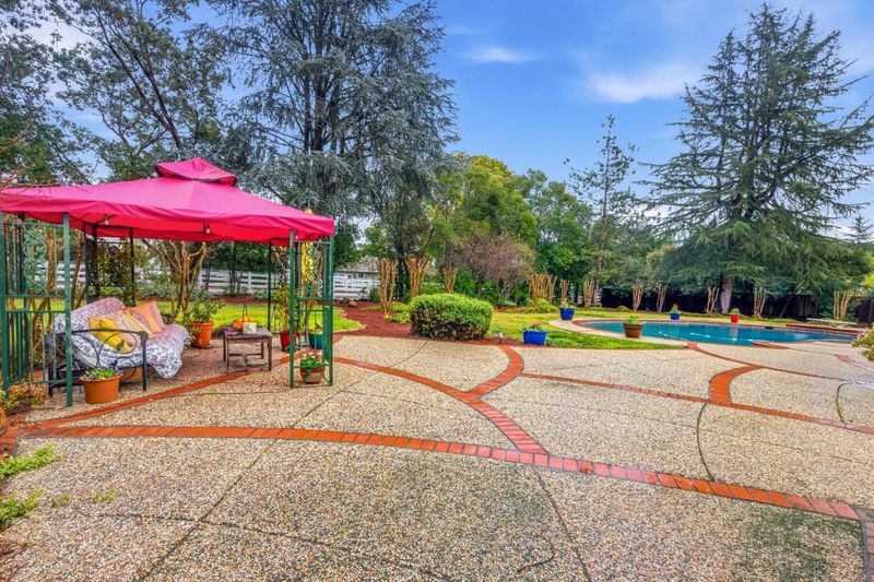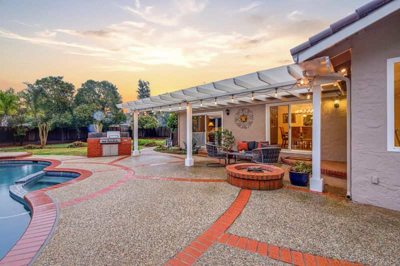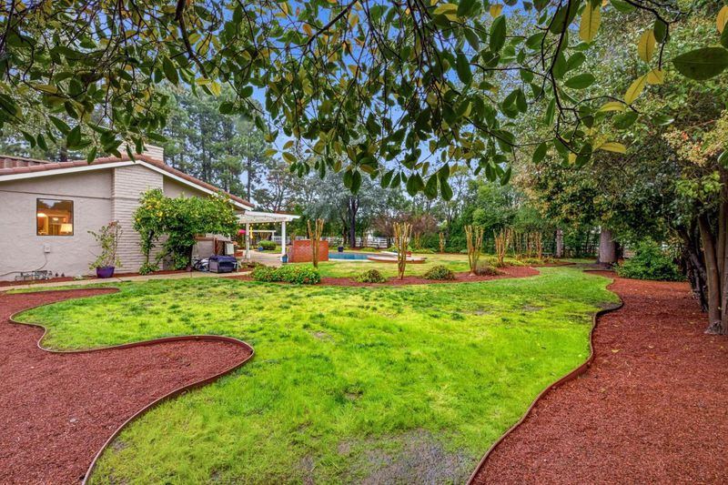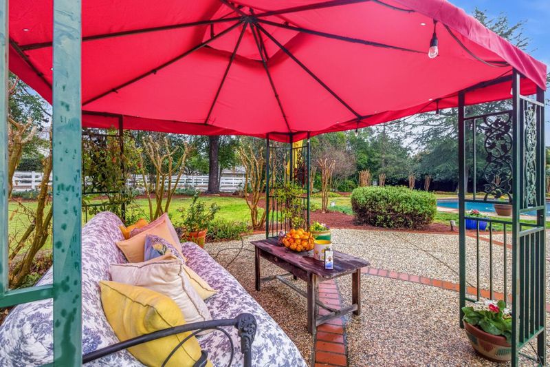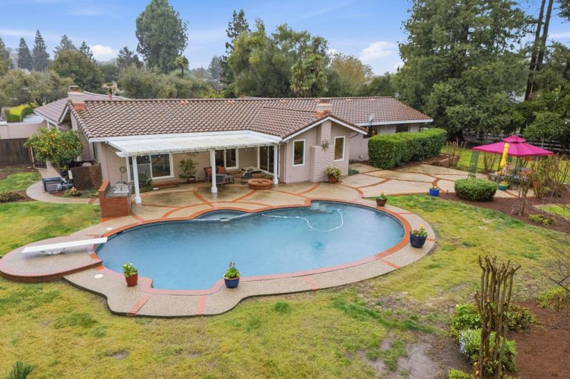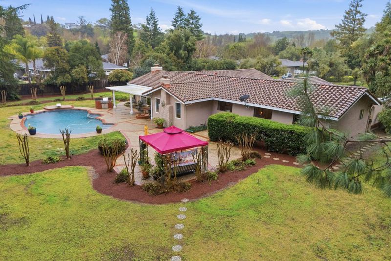 More photos coming shortly. Welcome to coveted Amberwood Glen, known for expansive lots, city services, and a private network of walking and riding trails. This beautifully maintained single-level Spanish-style home offers 4 bedrooms and 3 full bathrooms on a nearly one-acre, 42,000 sq ft lot. Vaulted ceilings in the living room, family room, and primary suite create an open feel, while hardwood flooring and travertine tile run throughout. The remodeled kitchen features quartz countertops and newer stainless steel appliances. The fully renovated primary bath offers a spa-like retreat. Designed for indoor-outdoor living, the backyard showcases a Pebble Tec pool and built-in spa, expansive patio areas, covered pergola, built-in BBQ, and blooming crepe myrtles. The front yard features new landscaping and an olive tree-lined circular driveway leading to a charming courtyard entry with iron-inlaid doors. A newer tile roof and rare 4-car garage complete this exceptional offering in one of Morgan Hills most desirable neighborhoods.
