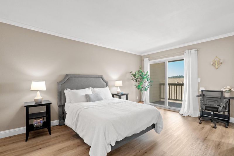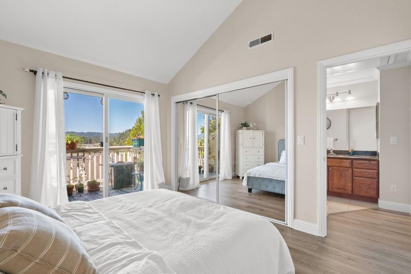 Perched at the top of Scottsborough, this beautifully upgraded 2BR/2BA end-unit townhome offers sweeping valley and mountain views, serene privacy, and a coveted Scotts Valley location. The living room features high ceilings and a cozy gas fireplace, while the contemporary kitchen boasts granite counters, stainless steel appliances, and a new disposal. Notable upgrades include a new garage door and opener, water heater, vinyl flooring, Anderson windows with shutters, a Culligan water softener, and fresh paint in the upstairs en suite. Each bedroom enjoys its own private deck to take in the scenery, and the downstairs bathroom has been completely remodeled to feature a large soaking tub. With a two-story floor plan, balconies on both levels, and a prime location at the end of the community with minimal traffic, this home blends comfort and convenience. Just steps from the community pool and extra guest parking, you're minutes from parks, trails, boutique shopping, dining, and top-rated Scotts Valley schools. Easy access to Hwy 17 means you're only a short drive to Santa Cruz beaches and Silicon Valley.