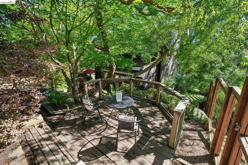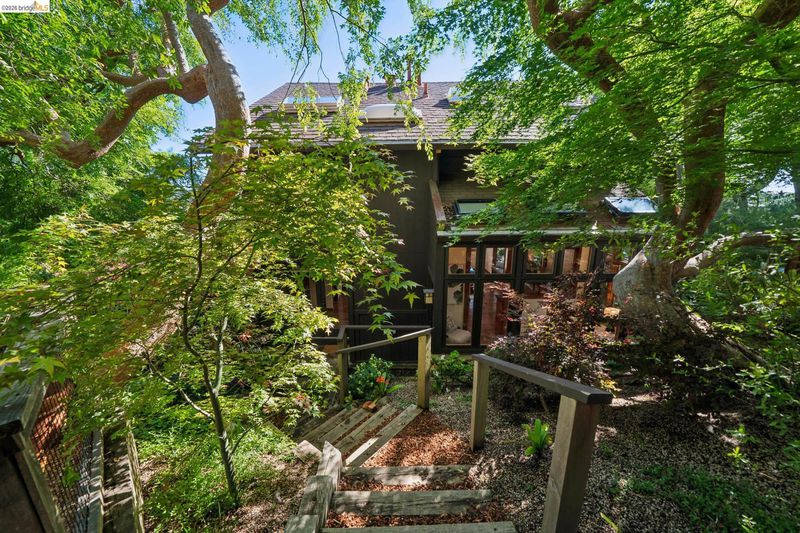 Simple Elegant Berkeley Hills Oasis with Expansive Two Bridge Views Experience the pinnacle of serene living, where sweeping two-bridge vistas meet architect-designed mid-century residence. This meticulously maintained sanctuary boasts 20ft soaring ceilings, artistic stained glass windows, and an open-concept layout bathed in natural light. Step through sliding doors to a sunny deck for sunset gatherings over the Bay. Lovely Garden view room perfect for home office. The upper level features a primary suite anchored by endless views, and a versatile second room—an ideal workspace or guest retreat. Key Highlights: * Modern Comfort: Newer Central AC and dual-pane windows. * Exquisite Finishes: Hubbarton Forge lighting, custom beech built-ins, granite countertops and glass backsplashes. * Outdoor Serenity: Professional landscaping with several separate spaces for quiet contemplation or entertaining with low-voltage lighting, irrigation, flowering plants and mature trees. Minutes to Tilden Park, Little Farm, Merry Go Round, trails, farmers markets, and North Berkeley’s shops and cafes. This is more than a residence; it is a place to settle in and slow down. It’s an invitation to find your own rhythm and create lasting memories in one of the Berkeley Hills’ most cherished locales. HES=4 Adjoining separate parcel (6,184 sqft, public records) at 1181 Keeler Ave. also for sale and offers parkland views from the main residence, and an opportunity for expansion or creation of a separate dwelling. Available to purchase together or separately.