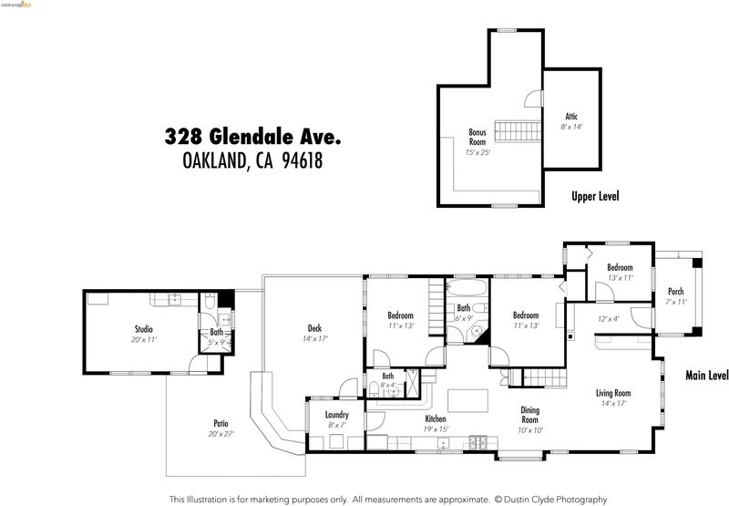 Nestled in the heart of one of Oakland's most desired neighborhoods, 328 Glendale Ave. offers more than just a place to live — it's a place to thrive. Discover why this sweet Rockridge block is the perfect setting for your next great adventure. Start with a Walk Score® of 94, as you're only 1 block from College Ave. and 6 blocks from the Rockridge BART. The open-plan primary house has 3 bedrooms (one is a perfect home office) & 2 updated bathrooms. The chef's kitchen is ready for your fanciest meal with still being able to enjoy company along the island. Upstairs, the attic has been developed into a play area and study/home office space (reduced head height). Green features include solar panels and an efficient heat pump, skylights and more. Designed for indoor/outdoor living, back beyond the expansive wooden benches & deck is a sparkling studio. It provides a Murphy bed, kitchenette & 3rd bathroom. Close to cafes, restaurants, the library, Piedmont Ave. & Temescal, you'll love life in this Craftsman cha