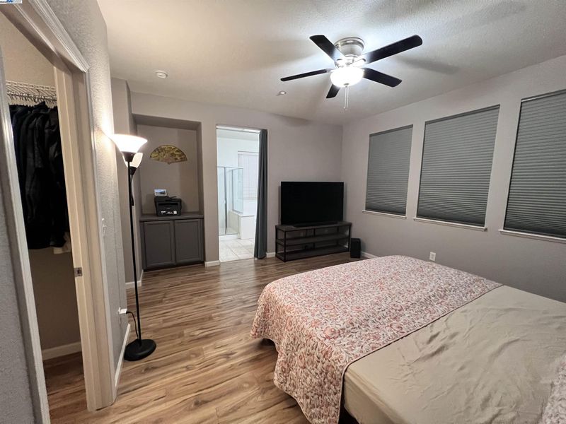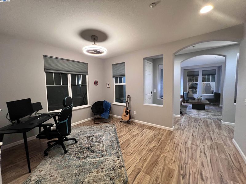 Immaculate and beautifully updated home. This well-kept and maintained property looks straight out of a model. Clean, modern, and move-in ready. The kitchen features new stainless steel appliances and smart home features throughout. The spacious living room offers flexibility for a home office or additional entertaining space with new Hunter Douglas blinds throughout. Beautiful flooring is complemented by custom two-tone paint in stylish light gray tones. Located at the preferred end of a court with no neighbors on one side, this home includes a covered front porch, new custom concrete patio, and a nicely sized yard with new fruit trees. Located close to the new Isaac R. MontaƱez Elementary School.