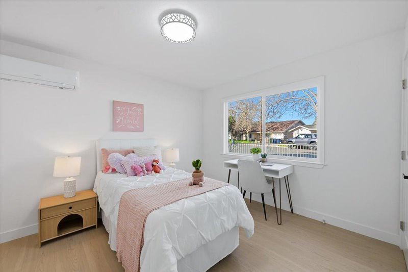 Step into this permitted new expansion and meticulously designed home, recently upgraded from 3B1B 939 sqft to 4B2B 1229 sqft, offering a modern open layout with more living space and functionality. Situated on an expansive corner lot of 6,900 sqft, this home reflects quality and care from the low-maintenance front yard and countless elegant upgrades. The home showcases SPC 8mm flooring, new double-pane shatter-resistant windows, new interior doors, and recessed lighting. The stylish kitchen features elegant two-tone slim shaker cabinets and quartz countertop with backsplash, stainless steel Samsung appliances, a smart gas range with integrated griddle, and modern fixtures. The new bathroom showcases high-end wall and floor tile finishes, a new TOTO toilet, a Delta shower system, and a marble-top vanity. Four spacious rooms with a well-designed layout provide an enhanced living experience. The expansive yard is ideal for outdoor entertaining, gardening, or adding an ADU for extended living or rental potential. You can also enjoy climate comfort with mini split heating & cooling installed in all rooms as well as the benefits of paid-off solar panels. Just 5 minutes to Ranch 99 and 10 minutes to Costco. Convenient access to Highway 880 & Dumbarton Bridge, Meta, Tesla, and more.