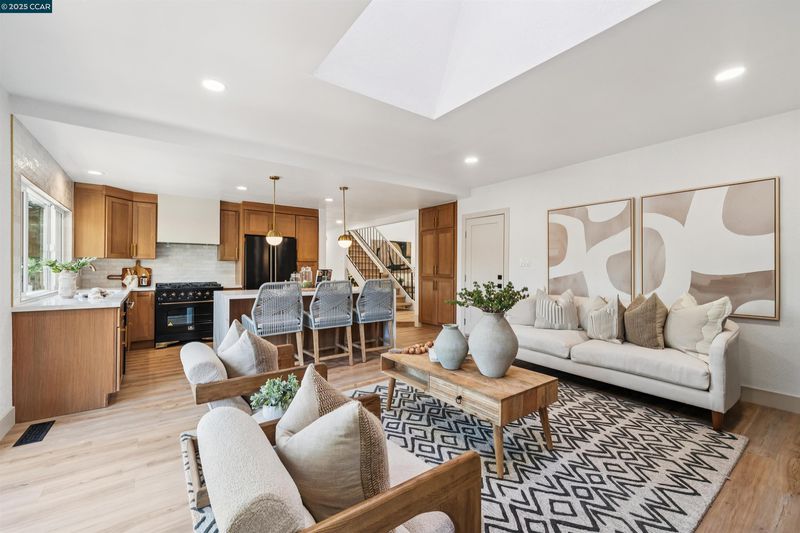 Beautifully remodeled 5-bedroom, 3-bathroom home with 2,309 sq ft of modern living space, ideally located next to Bishop Ranch—one of San Ramon’s most vibrant communities. Just minutes from City Center Bishop Ranch, top-rated schools, parks, dining, and commuter routes. Every inch has been thoughtfully updated with smooth skim-coated walls, two-tone paint, new doors and trims, luxury vinyl plank flooring, and designer tile in all bathrooms. The chef’s kitchen features natural oak shaker cabinets, quartz countertops with waterfall island, full-height backsplash, custom hood vent, and microwave drawer. Major system upgrades include new electrical, recessed lighting, ceiling fans, tankless water heater, HVAC, and dual-pane Low-E windows. The exterior offers new stucco, paint, rain gutters, garage door, and professional front and rear landscaping. Move-in ready with timeless finishes, this home blends luxury, comfort, and convenience—just steps from the best of Bishop Ranch living.