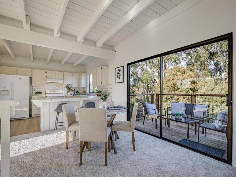 Fantastic home with partial ocean view at an exceptional price! Ready to move in with a new roof, new deck off dining area, new flooring and interior paint as well as dressed out front yard landscaping! 4 bedrooms and 3 baths with great separation, ocean peeks from the front bedroom and deck, beautiful canyon views off the back. A short jaunt to the beach as well as Seascape Golf Course and Deer Park Center, home has a 2-car attached garage, primary bedroom suite on the main level, cozy open beam ceiling & fireplace in the living room- this is the one! Home is within Rio Del Mar Elementary, Aptos Jr Sr High boundaries. Vacation 365 days a year- this home fits all your needs- whether your main home or vacation/second home it is terrific!