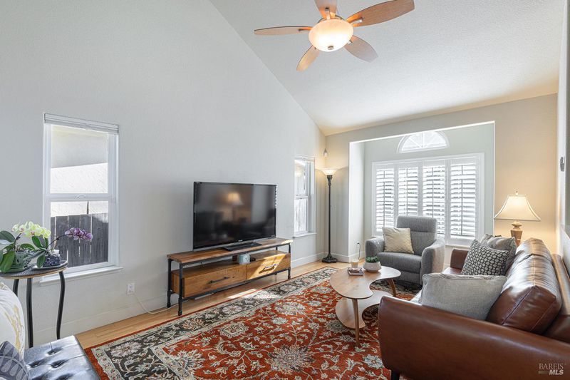 Be home for the Holidays! Beautifully and lovingly maintained 4 bedroom, 2.5 bath, two story home nestled in a desirable tree lined street in Sonoma. Step inside to find an open living space, featuring hardwood floors downstairs, cathedral ceilings, recessed lighting, a cozy fireplace, chef's kitchen, living and gathering rooms, a formal dining room, eat-in bar area and breakfast nook. Four bedrooms upstairs including the spacious primary suite with custom window shutters, ceiling fan, walk-in closet and a tiled shower. The other three bedrooms face east and have ceiling fans (there is AC), carpet and include custom shades. Laundry is located downstairs near the half bath powder room, next to the two car attached garage. Off the family room is a wonderful deck area to entertain and enjoy year round Sonoma living with room for tables, lounge chairs, umbrellas, and bbq. Green thumbs will love the garden areas (irrigated system) with low maintenance landscaping and trees that include Japanese Maples, a Redwood tree, Crepe Myrtles, Dogwoods and a Chinese Pistache. Room for a little dipping pool and or hot tub in this peaceful backyard sanctuary. Outdoor lighting lights up the front and back yards, making this home shine and stand out from the rest. (Home is not in a high fire zone.