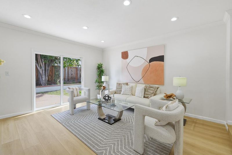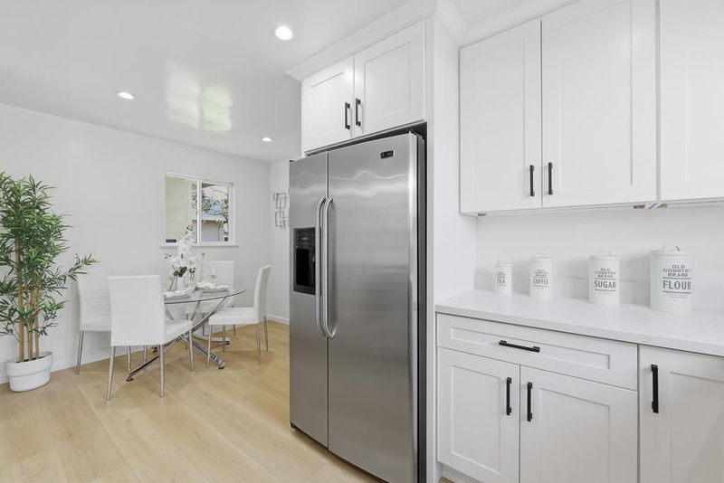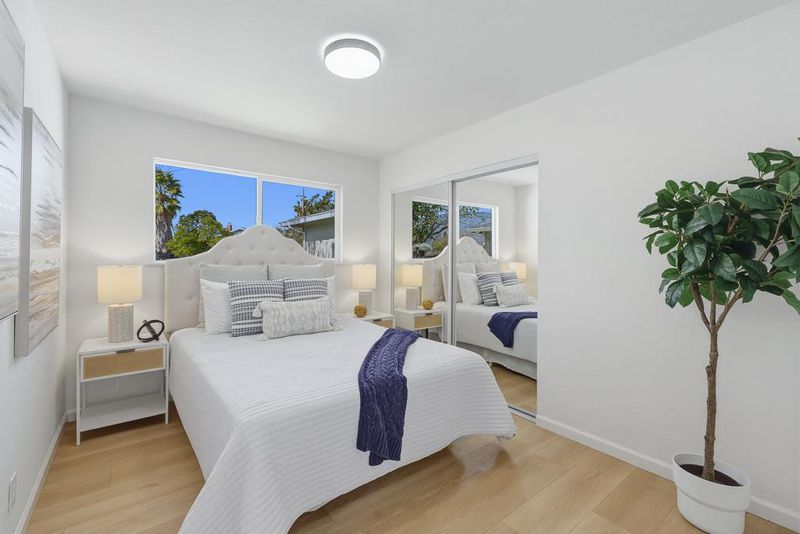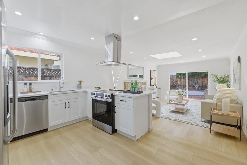 Move-in ready home in a top-rated school district. The remodeled kitchen features quartz countertops, white shaker cabinets, and new appliances, including a range and a dishwasher. Both bathrooms are fully updated with new vanities, lighting, tile flooring, and modern barn-style glass doors. Major improvements include a brand-new roof, fresh interior and exterior paint, energy-efficient R8 HVAC ducting, and completed fumigation with subterranean termite treatment. Additional upgrades include LVP flooring throughout, recessed lighting in main living areas, new fixtures in all bedrooms, upgraded electrical outlets, a new 50-gallon water heater. Has central A/C. Skylight in the living room adds natural light, and the primary suite offers a walk-in closet. Walking distance to Safeway shopping plaza and library.