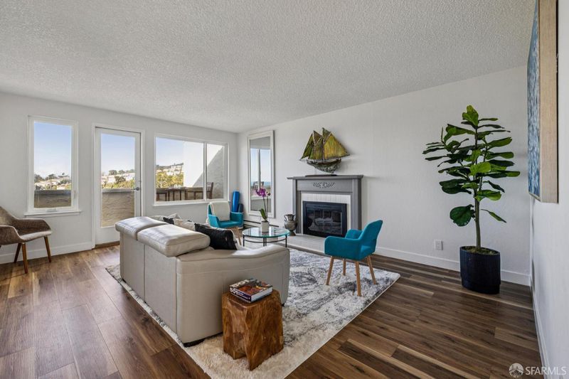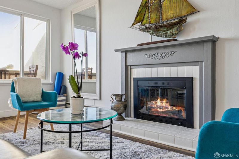 Perched high above the Pacific Ocean, 5003 Palmetto Ave. 92 is the top-floor view condo you've been waiting for. As you enter, the entry foyer has a large closet. Access the efficient, all-electric kitchen with new stainless appliances and hood, new butcher block counters with a deep stainless sink, a dishwasher, and ample cabinets. The adjacent dining room features beautiful ocean views and vaulted ceilings.The spacious living room features a decorative fireplace, a built-in cabinet, a private terrace with views of the ocean and surrounding hills, and several windows that provide ample light. There is a laundry closet in the hall with a stack washer/dryer. The 2nd bedroom has a large closet. The primary bedroom has a vaulted ceiling and a large walk-in closet. Both bedrooms face south and overlook lush greenery. All rooms feature large, energy-efficient, dual-pane windows that provide excellent light and warmth. There is a large updated bath with a new countertop, an illuminated mirror, a new light fixture, updated hardware, and a new shower door; a shower over the tub; and a linen closet. You can watch whales and hang gliders from your living room, dining room and balcony. There is multiple-zone heating, new electrical plugs and switches, a one-car garage with a storage room and an automatic door, 1-car parking in open spaces with a pass and limitations, a clubhouse, and tennis court. Close to Highway 1 and 280, Safeway, US Post Office, Chit Chat coffee, Mazzetti's Bakery, Taqueria la Mordida, Pacific Manor Hardware, beach access, and several schools.