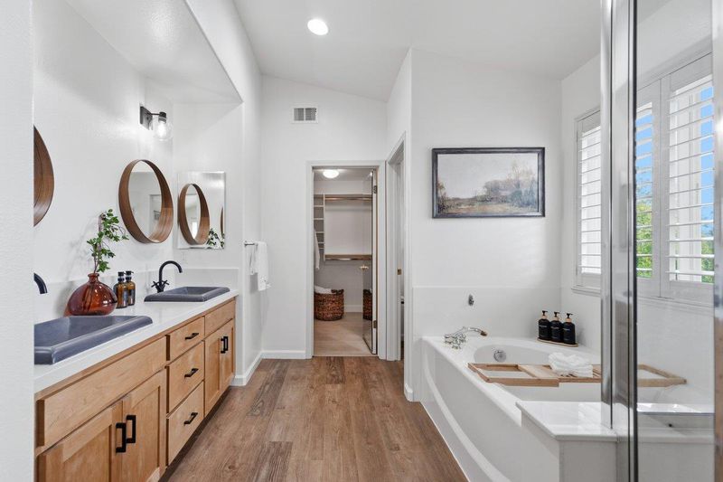 - Shower over Tub - 1, Double Sinks, Updated Bath, Primary - Sunken Tub