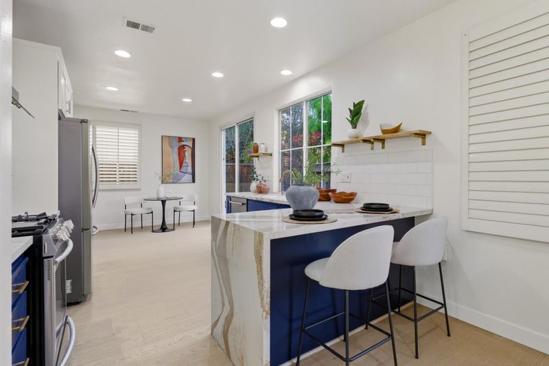 Rare newer construction in the heart of Cambrian with soaring vaulted ceilings and NO HOA! Beautifully remodeled 3BD/2.5BA single-family home offering approx. 1,634 sq ft of bright and inviting living space. The open floor plan is filled with natural light and features spacious living and dining areas ideal for both everyday living and entertaining. The gourmet kitchen showcases stainless steel appliances, gas range, and slab granite countertops. Additional highlights include new engineered flooring, recessed lighting, plantation shutters, interior panel doors, indoor laundry, and central heat & A/C. The spacious primary suite offers a relaxing retreat with soaking tub and large walk-in closet. Enjoy the private backyard with mature landscaping, perfect for outdoor dining and gatherings. Conveniently located near parks, Trader Joes, Costco, and major Silicon Valley employers including Netflix. Close to Steindorf STEAM School and The Harker School Middle School campus. Minutes to vibrant downtown Los Gatos, shopping, dining, and convenient commute routes. Located in a small and desirable community where only three homes have sold in the past five years, making this a rare opportunity.